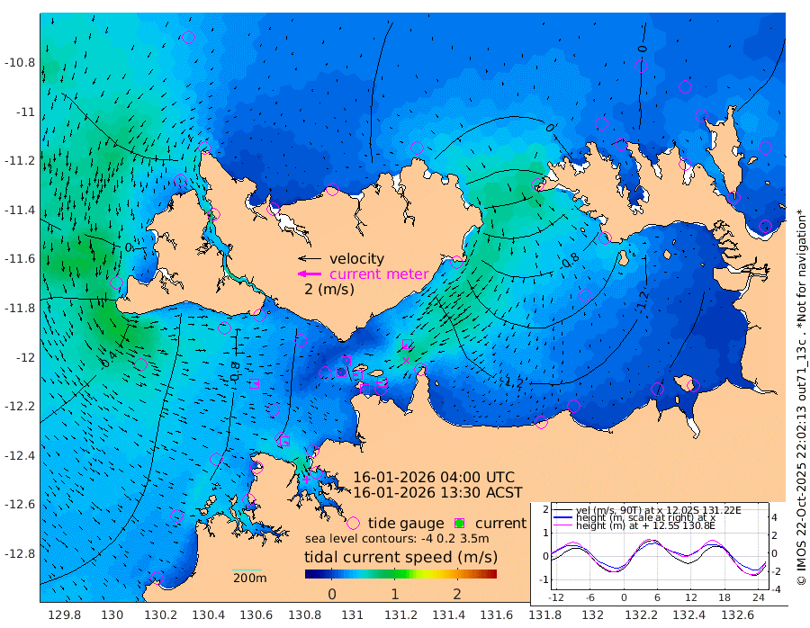 13cm/s -96T +4cm/s rms + 6cm/s 51T. Darwin_C1 52m 49cm/s -93T +4cm/s rms + 7cm/s -161T. Darwin_CW1 22m 2cm/s -85T +4cm/s rms + 8cm/s 61T. Darwin_CW2 34m 42cm/s -146T +3cm/s rms + 9cm/s 98T. Darwin_CW3 22m 36cm/s -88T +5cm/s rms + 7cm/s 88T. Darwin_C3 56m 14cm/s 62T +2cm/s rms + 9cm/s -126T. Darwin_CTbW 22m 36cm/s 98T +1cm/s rms + 1cm/s -47T. DARBGF 30m 42cm/s 126T +4cm/s rms + 3cm/s 80T. NRSDAR 19m 23cm Goodrich Bank -20cm Point Jenny -20cm Native Point -40cm Fish Reef -36cm Tapa Bay 6cm Point Fawcett (Offshore) -57cm Burge Point -22cm Munkunuwa -15cm Beagle A -52cm Parsons Bank -47cm Fenton Patches -56cm Hancox Shoal Area -50cm Nightcliff -78cm Darwin -61cm Charles Point Patches -89cm Glyde Point -114cm Chambers Bay -134cm Point Stuart -98cm Cape Hotham -95cm Christine Reef -147cm West Alligator Head -168cm East Field Island -98cm Two Hills Bay -99cm Camp Point -43cm Medina Inlet South 15cm South Barlow Point 24cm St. Asaph Bay 25cm Cape Van Dieman 17cm Snake Bay 17cm Cache Point 4cm Point Jahleel (Off) -30cm Cape Don -5cm Port Essington 6cm Smith Point - West 0cm NW Peacock Island 5cm North Of Jones Shoal 0cm Peacock Island -27cm Point David 1cm D'urville Point -28cm Copeland Island -27cm One Tree Point