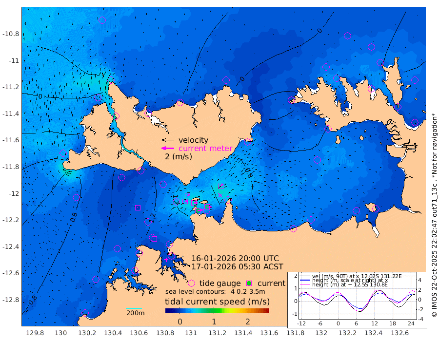 80cm/s 78T +4cm/s rms + 6cm/s 51T. Darwin_C1 52m 71cm/s 91T +4cm/s rms + 7cm/s -161T. Darwin_CW1 22m 32cm/s 72T +4cm/s rms + 8cm/s 61T. Darwin_CW2 34m 53cm/s 40T +3cm/s rms + 9cm/s 98T. Darwin_CW3 22m 52cm/s 90T +5cm/s rms + 7cm/s 88T. Darwin_C3 56m 38cm/s 66T +2cm/s rms + 9cm/s -126T. Darwin_CTbW 22m 2cm/s 28T +1cm/s rms + 1cm/s -47T. DARBGF 30m 3cm/s 26T +4cm/s rms + 3cm/s 80T. NRSDAR 19m -42cm Goodrich Bank 38cm Point Jenny 37cm Native Point 52cm Fish Reef 54cm Tapa Bay -4cm Point Fawcett (Offshore) 62cm Burge Point 47cm Munkunuwa 23cm Beagle A 70cm Parsons Bank 57cm Fenton Patches 70cm Hancox Shoal Area 75cm Nightcliff 84cm Darwin 65cm Charles Point Patches 68cm Glyde Point 61cm Chambers Bay 70cm Point Stuart 65cm Cape Hotham 48cm Christine Reef 74cm West Alligator Head 73cm East Field Island 54cm Two Hills Bay 54cm Camp Point 56cm Medina Inlet South -8cm South Barlow Point -27cm St. Asaph Bay -39cm Cape Van Dieman -30cm Snake Bay -36cm Cache Point -21cm Point Jahleel (Off) 17cm Cape Don -5cm Port Essington -9cm Smith Point - West -6cm NW Peacock Island -15cm North Of Jones Shoal -2cm Peacock Island 29cm Point David -1cm D'urville Point 32cm Copeland Island 24cm One Tree Point