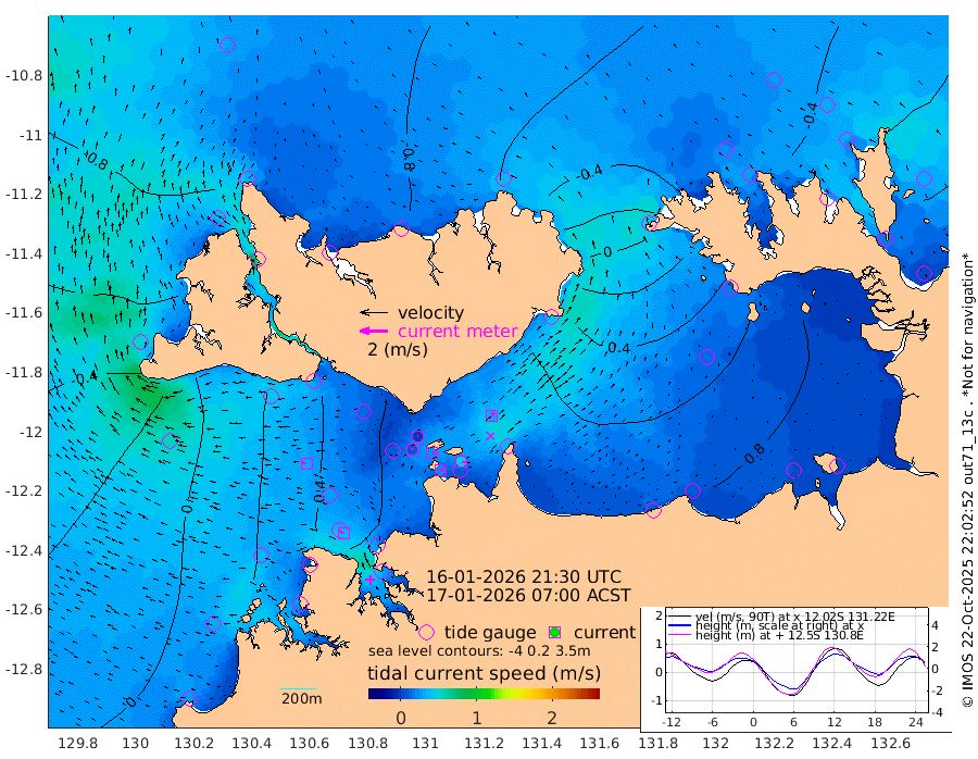 24cm/s 84T +4cm/s rms + 6cm/s 51T. Darwin_C1 52m 46cm/s 91T +4cm/s rms + 7cm/s -161T. Darwin_CW1 22m 10cm/s 52T +4cm/s rms + 8cm/s 61T. Darwin_CW2 34m 31cm/s 40T +3cm/s rms + 9cm/s 98T. Darwin_CW3 22m 23cm/s 90T +5cm/s rms + 7cm/s 88T. Darwin_C3 56m 2cm/s 78T +2cm/s rms + 9cm/s -126T. Darwin_CTbW 22m 31cm/s -85T +1cm/s rms + 1cm/s -47T. DARBGF 30m 39cm/s -56T +4cm/s rms + 3cm/s 80T. NRSDAR 19m -84cm Goodrich Bank -36cm Point Jenny -38cm Native Point -16cm Fish Reef -21cm Tapa Bay -69cm Point Fawcett (Offshore) -6cm Burge Point -20cm Munkunuwa -49cm Beagle A 5cm Parsons Bank -13cm Fenton Patches 8cm Hancox Shoal Area 1cm Nightcliff 18cm Darwin -5cm Charles Point Patches 31cm Glyde Point 57cm Chambers Bay 76cm Point Stuart 42cm Cape Hotham 39cm Christine Reef 86cm West Alligator Head 101cm East Field Island 42cm Two Hills Bay 38cm Camp Point -13cm Medina Inlet South -70cm South Barlow Point -82cm St. Asaph Bay -84cm Cape Van Dieman -79cm Snake Bay -80cm Cache Point -62cm Point Jahleel (Off) -21cm Cape Don -45cm Port Essington -53cm Smith Point - West -47cm NW Peacock Island -56cm North Of Jones Shoal -17cm Peacock Island -11cm Point David -44cm D'urville Point -5cm Copeland Island -14cm One Tree Point