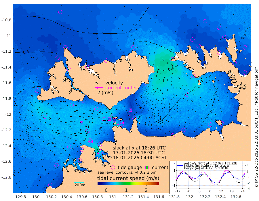 72cm/s 78T +4cm/s rms + 6cm/s 51T. Darwin_C1 52m 35cm/s 76T +4cm/s rms + 7cm/s -161T. Darwin_CW1 22m 16cm/s 79T +4cm/s rms + 8cm/s 61T. Darwin_CW2 34m 17cm/s 63T +3cm/s rms + 9cm/s 98T. Darwin_CW3 22m 4cm/s 80T +5cm/s rms + 7cm/s 88T. Darwin_C3 56m 56cm/s 62T +2cm/s rms + 9cm/s -126T. Darwin_CTbW 22m 29cm/s 93T +1cm/s rms + 1cm/s -47T. DARBGF 30m 30cm/s 121T +4cm/s rms + 3cm/s 80T. NRSDAR 19m 34cm Goodrich Bank 72cm Point Jenny 75cm Native Point 67cm Fish Reef 78cm Tapa Bay 58cm Point Fawcett (Offshore) 71cm Burge Point 69cm Munkunuwa 67cm Beagle A 74cm Parsons Bank 71cm Fenton Patches 70cm Hancox Shoal Area 79cm Nightcliff 74cm Darwin 75cm Charles Point Patches 39cm Glyde Point -5cm Chambers Bay -11cm Point Stuart 26cm Cape Hotham -1cm Christine Reef -21cm West Alligator Head -39cm East Field Island 10cm Two Hills Bay 16cm Camp Point 71cm Medina Inlet South 59cm South Barlow Point 47cm St. Asaph Bay 40cm Cape Van Dieman 48cm Snake Bay 37cm Cache Point 37cm Point Jahleel (Off) 40cm Cape Don 45cm Port Essington 45cm Smith Point - West 48cm NW Peacock Island 40cm North Of Jones Shoal 16cm Peacock Island 65cm Point David 53cm D'urville Point 64cm Copeland Island 58cm One Tree Point