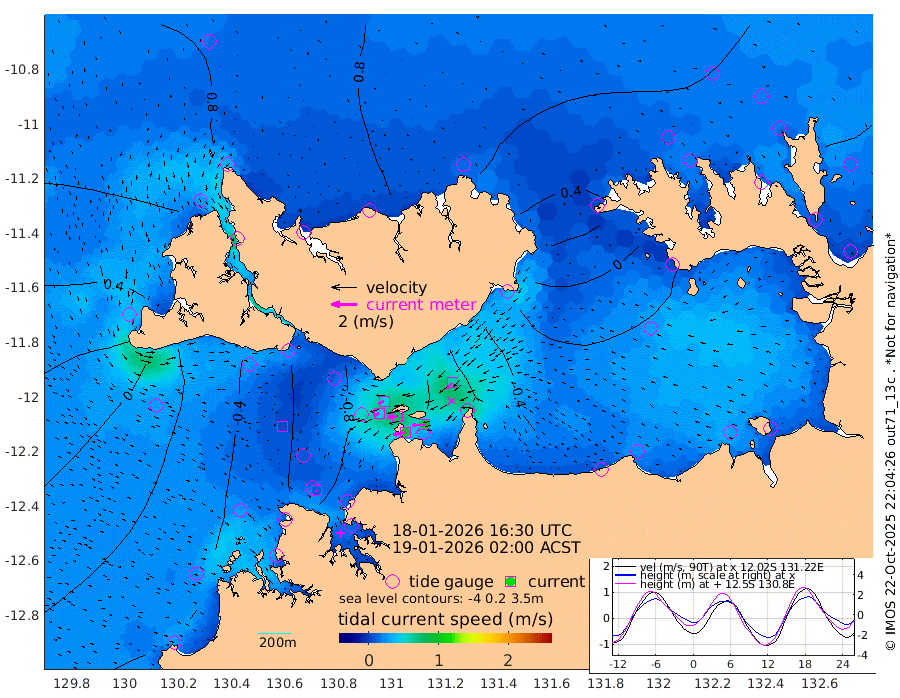 97cm/s -100T +4cm/s rms + 6cm/s 51T. Darwin_C1 52m 97cm/s -92T +4cm/s rms + 7cm/s -161T. Darwin_CW1 22m 45cm/s -107T +4cm/s rms + 8cm/s 61T. Darwin_CW2 34m 63cm/s -136T +3cm/s rms + 9cm/s 98T. Darwin_CW3 22m 77cm/s -92T +5cm/s rms + 7cm/s 88T. Darwin_C3 56m 46cm/s -115T +2cm/s rms + 9cm/s -126T. Darwin_CTbW 22m 6cm/s 136T +1cm/s rms + 1cm/s -47T. DARBGF 30m 10cm/s 167T +4cm/s rms + 3cm/s 80T. NRSDAR 19m 70cm Goodrich Bank -39cm Point Jenny -35cm Native Point -55cm Fish Reef -55cm Tapa Bay 19cm Point Fawcett (Offshore) -69cm Burge Point -59cm Munkunuwa -23cm Beagle A -71cm Parsons Bank -66cm Fenton Patches -75cm Hancox Shoal Area -85cm Nightcliff -86cm Darwin -62cm Charles Point Patches -66cm Glyde Point -76cm Chambers Bay -74cm Point Stuart -61cm Cape Hotham -62cm Christine Reef -87cm West Alligator Head -89cm East Field Island -50cm Two Hills Bay -45cm Camp Point -59cm Medina Inlet South 28cm South Barlow Point 43cm St. Asaph Bay 70cm Cape Van Dieman 68cm Snake Bay 66cm Cache Point 48cm Point Jahleel (Off) 11cm Cape Don 45cm Port Essington 44cm Smith Point - West 49cm NW Peacock Island 52cm North Of Jones Shoal 17cm Peacock Island 39cm Point David 46cm D'urville Point 33cm Copeland Island 36cm One Tree Point
