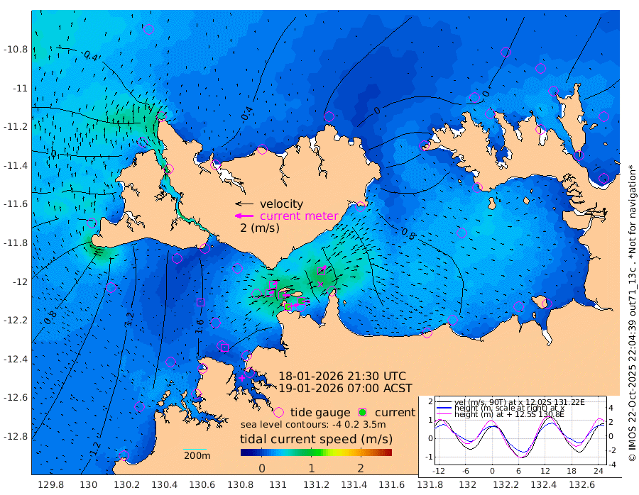 122cm/s 78T +4cm/s rms + 6cm/s 51T. Darwin_C1 52m 91cm/s 92T +4cm/s rms + 7cm/s -161T. Darwin_CW1 22m 56cm/s 71T +4cm/s rms + 8cm/s 61T. Darwin_CW2 34m 80cm/s 42T +3cm/s rms + 9cm/s 98T. Darwin_CW3 22m 83cm/s 89T +5cm/s rms + 7cm/s 88T. Darwin_C3 56m 57cm/s 66T +2cm/s rms + 9cm/s -126T. Darwin_CTbW 22m 4cm/s 35T +1cm/s rms + 1cm/s -47T. DARBGF 30m 5cm/s 12T +4cm/s rms + 3cm/s 80T. NRSDAR 19m -53cm Goodrich Bank 69cm Point Jenny 68cm Native Point 82cm Fish Reef 97cm Tapa Bay 2cm Point Fawcett (Offshore) 103cm Burge Point 86cm Munkunuwa 44cm Beagle A 116cm Parsons Bank 96cm Fenton Patches 120cm Hancox Shoal Area 123cm Nightcliff 135cm Darwin 109cm Charles Point Patches 102cm Glyde Point 90cm Chambers Bay 93cm Point Stuart 94cm Cape Hotham 72cm Christine Reef 100cm West Alligator Head 95cm East Field Island 75cm Two Hills Bay 77cm Camp Point 93cm Medina Inlet South -4cm South Barlow Point -29cm St. Asaph Bay -49cm Cape Van Dieman -38cm Snake Bay -47cm Cache Point -25cm Point Jahleel (Off) 22cm Cape Don -8cm Port Essington -11cm Smith Point - West -7cm NW Peacock Island -24cm North Of Jones Shoal -5cm Peacock Island 38cm Point David 0cm D'urville Point 43cm Copeland Island 29cm One Tree Point