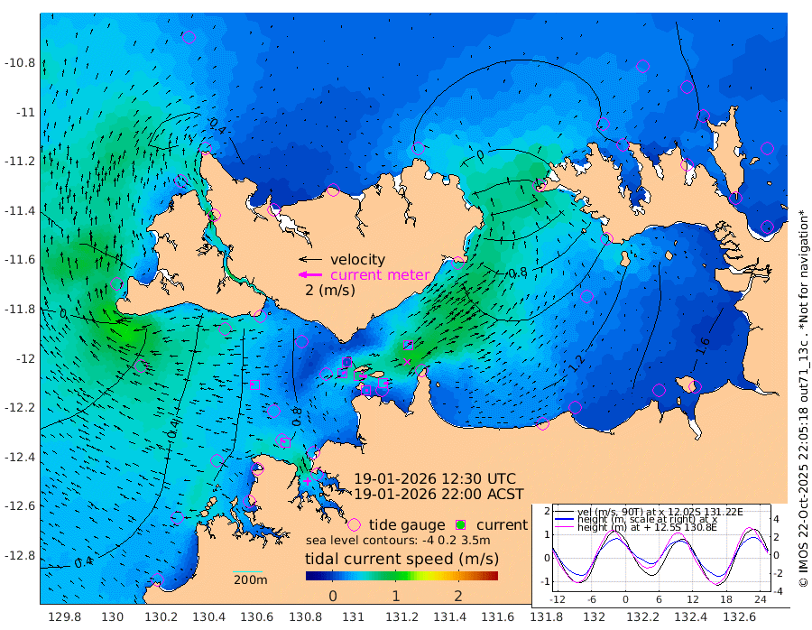 18cm/s 81T +4cm/s rms + 6cm/s 51T. Darwin_C1 52m 48cm/s 88T +4cm/s rms + 7cm/s -161T. Darwin_CW1 22m 27cm/s 75T +4cm/s rms + 8cm/s 61T. Darwin_CW2 34m 37cm/s 37T +3cm/s rms + 9cm/s 98T. Darwin_CW3 22m 72cm/s 91T +5cm/s rms + 7cm/s 88T. Darwin_C3 56m 5cm/s 87T +2cm/s rms + 9cm/s -126T. Darwin_CTbW 22m 38cm/s -79T +1cm/s rms + 1cm/s -47T. DARBGF 30m 49cm/s -50T +4cm/s rms + 3cm/s 80T. NRSDAR 19m -18cm Goodrich Bank 39cm Point Jenny 37cm Native Point 51cm Fish Reef 54cm Tapa Bay 1cm Point Fawcett (Offshore) 69cm Burge Point 32cm Munkunuwa 27cm Beagle A 60cm Parsons Bank 63cm Fenton Patches 75cm Hancox Shoal Area 70cm Nightcliff 94cm Darwin 78cm Charles Point Patches 109cm Glyde Point 158cm Chambers Bay 164cm Point Stuart 111cm Cape Hotham 138cm Christine Reef 185cm West Alligator Head 212cm East Field Island 120cm Two Hills Bay 121cm Camp Point 57cm Medina Inlet South -12cm South Barlow Point -16cm St. Asaph Bay -25cm Cape Van Dieman -22cm Snake Bay -15cm Cache Point -2cm Point Jahleel (Off) 35cm Cape Don -2cm Port Essington -8cm Smith Point - West -8cm NW Peacock Island -9cm North Of Jones Shoal -4cm Peacock Island -3cm Point David -11cm D'urville Point -2cm Copeland Island 4cm One Tree Point