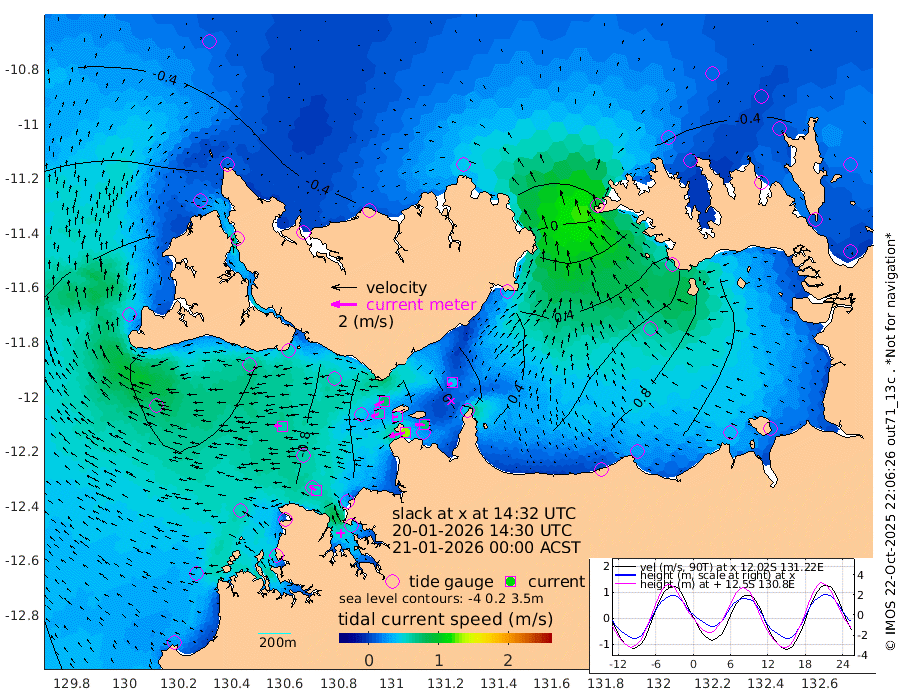 130cm/s -102T +4cm/s rms + 6cm/s 51T. Darwin_C1 52m 73cm/s -88T +4cm/s rms + 7cm/s -161T. Darwin_CW1 22m 62cm/s -111T +4cm/s rms + 8cm/s 61T. Darwin_CW2 34m 41cm/s -118T +3cm/s rms + 9cm/s 98T. Darwin_CW3 22m 45cm/s -94T +5cm/s rms + 7cm/s 88T. Darwin_C3 56m 75cm/s -116T +2cm/s rms + 9cm/s -126T. Darwin_CTbW 22m 61cm/s -88T +1cm/s rms + 1cm/s -47T. DARBGF 30m 56cm/s -58T +4cm/s rms + 3cm/s 80T. NRSDAR 19m -16cm Goodrich Bank -98cm Point Jenny -99cm Native Point -96cm Fish Reef -104cm Tapa Bay -67cm Point Fawcett (Offshore) -99cm Burge Point -118cm Munkunuwa -93cm Beagle A -103cm Parsons Bank -100cm Fenton Patches -87cm Hancox Shoal Area -105cm Nightcliff -88cm Darwin -86cm Charles Point Patches -16cm Glyde Point 65cm Chambers Bay 82cm Point Stuart 8cm Cape Hotham 54cm Christine Reef 97cm West Alligator Head 137cm East Field Island 42cm Two Hills Bay 41cm Camp Point -97cm Medina Inlet South -70cm South Barlow Point -52cm St. Asaph Bay -26cm Cape Van Dieman -28cm Snake Bay -17cm Cache Point -17cm Point Jahleel (Off) -10cm Cape Don -19cm Port Essington -27cm Smith Point - West -22cm NW Peacock Island -14cm North Of Jones Shoal -6cm Peacock Island -25cm Point David -30cm D'urville Point -25cm Copeland Island -17cm One Tree Point