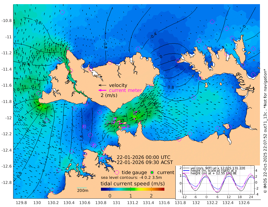 126cm/s 79T +4cm/s rms + 6cm/s 51T. Darwin_C1 52m 79cm/s 94T +4cm/s rms + 7cm/s -161T. Darwin_CW1 22m 68cm/s 70T +4cm/s rms + 8cm/s 61T. Darwin_CW2 34m 87cm/s 43T +3cm/s rms + 9cm/s 98T. Darwin_CW3 22m 107cm/s 89T +5cm/s rms + 7cm/s 88T. Darwin_C3 56m 58cm/s 65T +2cm/s rms + 9cm/s -126T. Darwin_CTbW 22m 20cm/s -71T +1cm/s rms + 1cm/s -47T. DARBGF 30m 32cm/s -45T +4cm/s rms + 3cm/s 80T. NRSDAR 19m -75cm Goodrich Bank 75cm Point Jenny 73cm Native Point 85cm Fish Reef 110cm Tapa Bay -18cm Point Fawcett (Offshore) 116cm Burge Point 90cm Munkunuwa 38cm Beagle A 136cm Parsons Bank 109cm Fenton Patches 150cm Hancox Shoal Area 144cm Nightcliff 159cm Darwin 124cm Charles Point Patches 137cm Glyde Point 154cm Chambers Bay 155cm Point Stuart 133cm Cape Hotham 131cm Christine Reef 171cm West Alligator Head 175cm East Field Island 118cm Two Hills Bay 116cm Camp Point 99cm Medina Inlet South -26cm South Barlow Point -53cm St. Asaph Bay -74cm Cape Van Dieman -65cm Snake Bay -68cm Cache Point -36cm Point Jahleel (Off) 26cm Cape Don -19cm Port Essington -19cm Smith Point - West -15cm NW Peacock Island -40cm North Of Jones Shoal -10cm Peacock Island 37cm Point David -8cm D'urville Point 45cm Copeland Island 25cm One Tree Point