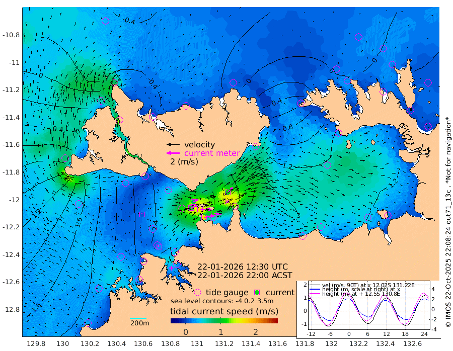 167cm/s 79T +4cm/s rms + 6cm/s 51T. Darwin_C1 52m 115cm/s 93T +4cm/s rms + 7cm/s -161T. Darwin_CW1 22m 107cm/s 71T +4cm/s rms + 8cm/s 61T. Darwin_CW2 34m 106cm/s 46T +3cm/s rms + 9cm/s 98T. Darwin_CW3 22m 169cm/s 90T +5cm/s rms + 7cm/s 88T. Darwin_C3 56m 84cm/s 66T +2cm/s rms + 9cm/s -126T. Darwin_CTbW 22m 11cm/s -19T +1cm/s rms + 1cm/s -47T. DARBGF 30m 24cm/s -32T +4cm/s rms + 3cm/s 80T. NRSDAR 19m -32cm Goodrich Bank 159cm Point Jenny 158cm Native Point 171cm Fish Reef 188cm Tapa Bay 51cm Point Fawcett (Offshore) 215cm Burge Point 172cm Munkunuwa 130cm Beagle A 209cm Parsons Bank 203cm Fenton Patches 213cm Hancox Shoal Area 229cm Nightcliff 242cm Darwin 204cm Charles Point Patches 195cm Glyde Point 196cm Chambers Bay 189cm Point Stuart 174cm Cape Hotham 181cm Christine Reef 208cm West Alligator Head 211cm East Field Island 155cm Two Hills Bay 156cm Camp Point 188cm Medina Inlet South 39cm South Barlow Point 7cm St. Asaph Bay -33cm Cape Van Dieman -22cm Snake Bay -26cm Cache Point 1cm Point Jahleel (Off) 64cm Cape Don 4cm Port Essington 4cm Smith Point - West 0cm NW Peacock Island -14cm North Of Jones Shoal -4cm Peacock Island 20cm Point David 4cm D'urville Point 23cm Copeland Island 22cm One Tree Point