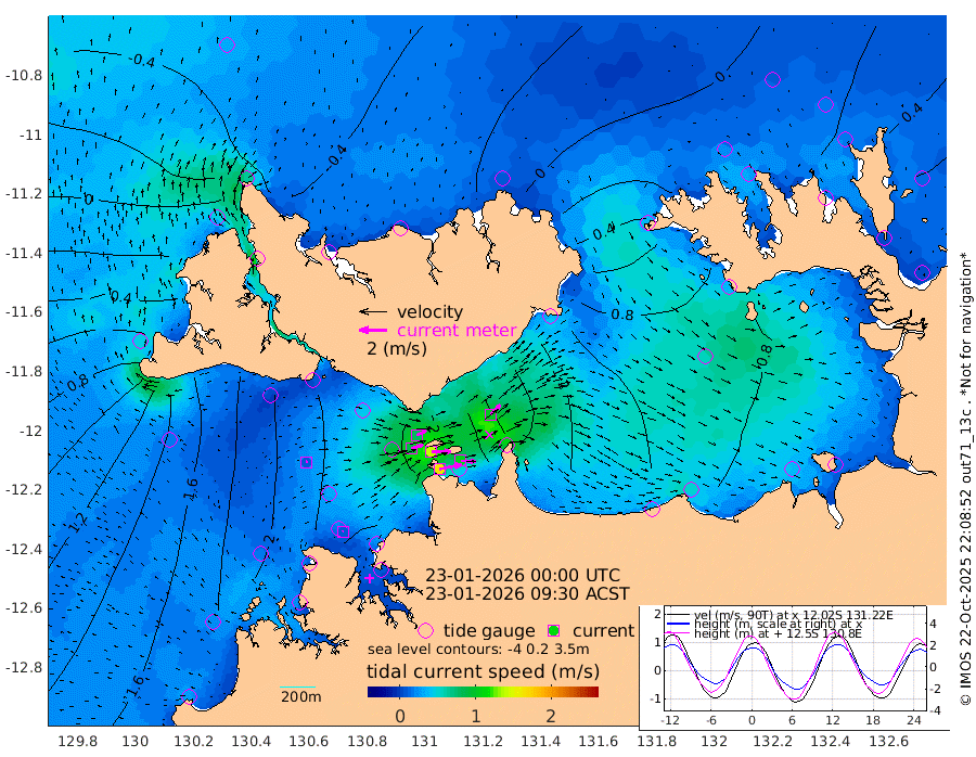 165cm/s 78T +4cm/s rms + 6cm/s 51T. Darwin_C1 52m 106cm/s 93T +4cm/s rms + 7cm/s -161T. Darwin_CW1 22m 90cm/s 72T +4cm/s rms + 8cm/s 61T. Darwin_CW2 34m 101cm/s 44T +3cm/s rms + 9cm/s 98T. Darwin_CW3 22m 138cm/s 89T +5cm/s rms + 7cm/s 88T. Darwin_C3 56m 77cm/s 65T +2cm/s rms + 9cm/s -126T. Darwin_CTbW 22m 10cm/s 55T +1cm/s rms + 1cm/s -47T. DARBGF 30m 9cm/s 30T +4cm/s rms + 3cm/s 80T. NRSDAR 19m -40cm Goodrich Bank 138cm Point Jenny 137cm Native Point 144cm Fish Reef 173cm Tapa Bay 37cm Point Fawcett (Offshore) 178cm Burge Point 154cm Munkunuwa 99cm Beagle A 195cm Parsons Bank 169cm Fenton Patches 201cm Hancox Shoal Area 198cm Nightcliff 213cm Darwin 184cm Charles Point Patches 160cm Glyde Point 143cm Chambers Bay 135cm Point Stuart 141cm Cape Hotham 127cm Christine Reef 144cm West Alligator Head 132cm East Field Island 115cm Two Hills Bay 116cm Camp Point 160cm Medina Inlet South 27cm South Barlow Point -5cm St. Asaph Bay -36cm Cape Van Dieman -28cm Snake Bay -32cm Cache Point -5cm Point Jahleel (Off) 53cm Cape Don 13cm Port Essington 15cm Smith Point - West 16cm NW Peacock Island -12cm North Of Jones Shoal -1cm Peacock Island 60cm Point David 25cm D'urville Point 66cm Copeland Island 48cm One Tree Point