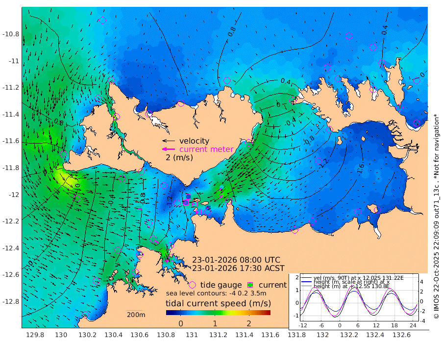 29cm/s -101T +4cm/s rms + 6cm/s 51T. Darwin_C1 52m 15cm/s -97T +4cm/s rms + 7cm/s -161T. Darwin_CW1 22m 12cm/s -105T +4cm/s rms + 8cm/s 61T. Darwin_CW2 34m 53cm/s -140T +3cm/s rms + 9cm/s 98T. Darwin_CW3 22m 50cm/s -89T +5cm/s rms + 7cm/s 88T. Darwin_C3 56m 6cm/s -116T +2cm/s rms + 9cm/s -126T. Darwin_CTbW 22m 60cm/s 97T +1cm/s rms + 1cm/s -47T. DARBGF 30m 69cm/s 129T +4cm/s rms + 3cm/s 80T. NRSDAR 19m 86cm Goodrich Bank 3cm Point Jenny 6cm Native Point 1cm Fish Reef -18cm Tapa Bay 71cm Point Fawcett (Offshore) -28cm Burge Point 8cm Munkunuwa 37cm Beagle A -42cm Parsons Bank -19cm Fenton Patches -64cm Hancox Shoal Area -50cm Nightcliff -67cm Darwin -37cm Charles Point Patches -99cm Glyde Point -173cm Chambers Bay -183cm Point Stuart -110cm Cape Hotham -151cm Christine Reef -207cm West Alligator Head -236cm East Field Island -123cm Two Hills Bay -122cm Camp Point -12cm Medina Inlet South 78cm South Barlow Point 90cm St. Asaph Bay 91cm Cape Van Dieman 87cm Snake Bay 80cm Cache Point 53cm Point Jahleel (Off) -11cm Cape Don 37cm Port Essington 43cm Smith Point - West 36cm NW Peacock Island 53cm North Of Jones Shoal 16cm Peacock Island -7cm Point David 35cm D'urville Point -14cm Copeland Island -2cm One Tree Point