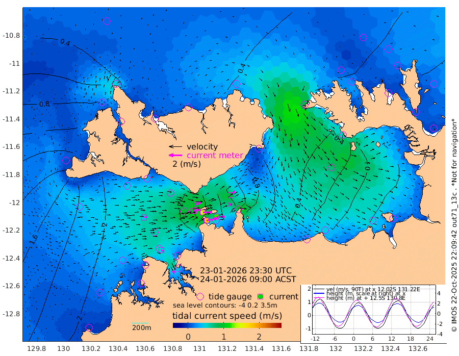 178cm/s 78T +4cm/s rms + 6cm/s 51T. Darwin_C1 52m 123cm/s 90T +4cm/s rms + 7cm/s -161T. Darwin_CW1 22m 97cm/s 74T +4cm/s rms + 8cm/s 61T. Darwin_CW2 34m 88cm/s 47T +3cm/s rms + 9cm/s 98T. Darwin_CW3 22m 140cm/s 88T +5cm/s rms + 7cm/s 88T. Darwin_C3 56m 90cm/s 65T +2cm/s rms + 9cm/s -126T. Darwin_CTbW 22m 47cm/s 87T +1cm/s rms + 1cm/s -47T. DARBGF 30m 45cm/s 111T +4cm/s rms + 3cm/s 80T. NRSDAR 19m 18cm Goodrich Bank 182cm Point Jenny 182cm Native Point 184cm Fish Reef 206cm Tapa Bay 102cm Point Fawcett (Offshore) 208cm Burge Point 202cm Munkunuwa 149cm Beagle A 219cm Parsons Bank 195cm Fenton Patches 208cm Hancox Shoal Area 210cm Nightcliff 225cm Darwin 212cm Charles Point Patches 134cm Glyde Point 65cm Chambers Bay 46cm Point Stuart 100cm Cape Hotham 62cm Christine Reef 41cm West Alligator Head 4cm East Field Island 63cm Two Hills Bay 65cm Camp Point 197cm Medina Inlet South 95cm South Barlow Point 63cm St. Asaph Bay 26cm Cape Van Dieman 31cm Snake Bay 24cm Cache Point 36cm Point Jahleel (Off) 69cm Cape Don 53cm Port Essington 56cm Smith Point - West 52cm NW Peacock Island 30cm North Of Jones Shoal 13cm Peacock Island 75cm Point David 62cm D'urville Point 77cm Copeland Island 66cm One Tree Point
