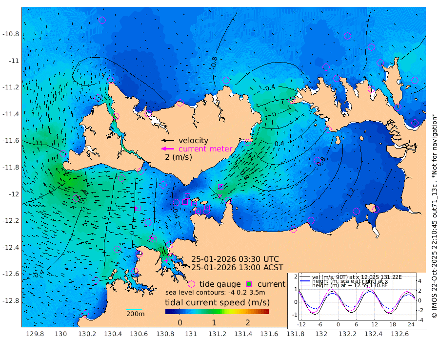 18cm/s 83T +4cm/s rms + 6cm/s 51T. Darwin_C1 52m 9cm/s 84T +4cm/s rms + 7cm/s -161T. Darwin_CW1 22m 1cm/s -22T +4cm/s rms + 8cm/s 61T. Darwin_CW2 34m 27cm/s 40T +3cm/s rms + 9cm/s 98T. Darwin_CW3 22m 18cm/s 95T +5cm/s rms + 7cm/s 88T. Darwin_C3 56m 9cm/s 68T +2cm/s rms + 9cm/s -126T. Darwin_CTbW 22m 48cm/s -84T +1cm/s rms + 1cm/s -47T. DARBGF 30m 59cm/s -54T +4cm/s rms + 3cm/s 80T. NRSDAR 19m -75cm Goodrich Bank -17cm Point Jenny -22cm Native Point -20cm Fish Reef -6cm Tapa Bay -66cm Point Fawcett (Offshore) -5cm Burge Point -35cm Munkunuwa -38cm Beagle A 4cm Parsons Bank -1cm Fenton Patches 32cm Hancox Shoal Area 22cm Nightcliff 18cm Darwin -3cm Charles Point Patches 65cm Glyde Point 142cm Chambers Bay 151cm Point Stuart 84cm Cape Hotham 129cm Christine Reef 173cm West Alligator Head 203cm East Field Island 98cm Two Hills Bay 91cm Camp Point -20cm Medina Inlet South -80cm South Barlow Point -79cm St. Asaph Bay -80cm Cape Van Dieman -82cm Snake Bay -66cm Cache Point -45cm Point Jahleel (Off) -1cm Cape Don -41cm Port Essington -38cm Smith Point - West -34cm NW Peacock Island -47cm North Of Jones Shoal -15cm Peacock Island -6cm Point David -34cm D'urville Point 2cm Copeland Island -11cm One Tree Point