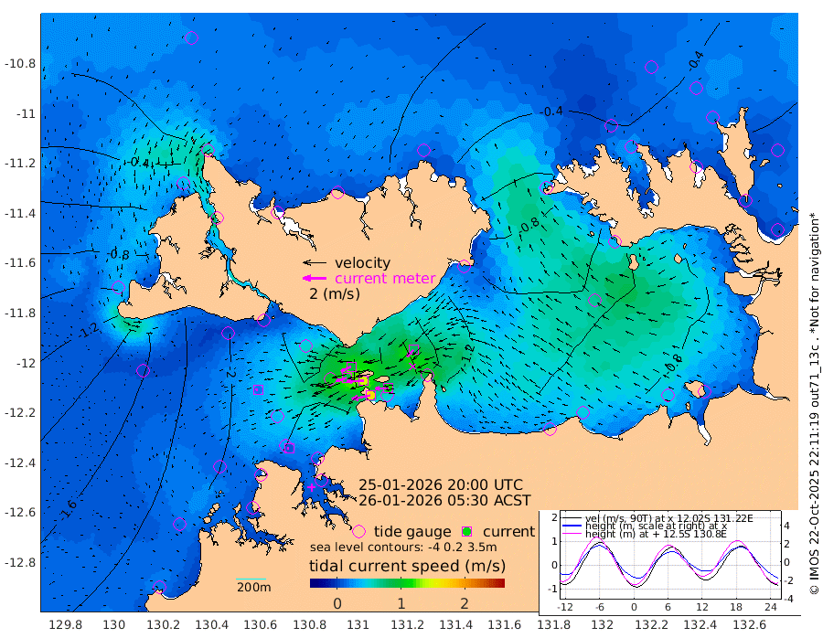 162cm/s -101T +4cm/s rms + 6cm/s 51T. Darwin_C1 52m 112cm/s -91T +4cm/s rms + 7cm/s -161T. Darwin_CW1 22m 88cm/s -106T +4cm/s rms + 8cm/s 61T. Darwin_CW2 34m 81cm/s -136T +3cm/s rms + 9cm/s 98T. Darwin_CW3 22m 144cm/s -91T +5cm/s rms + 7cm/s 88T. Darwin_C3 56m 94cm/s -115T +2cm/s rms + 9cm/s -126T. Darwin_CTbW 22m 18cm/s -110T +1cm/s rms + 1cm/s -47T. DARBGF 30m 12cm/s -106T +4cm/s rms + 3cm/s 80T. NRSDAR 19m -6cm Goodrich Bank -176cm Point Jenny -174cm Native Point -184cm Fish Reef -200cm Tapa Bay -86cm Point Fawcett (Offshore) -213cm Burge Point -178cm Munkunuwa -153cm Beagle A -215cm Parsons Bank -210cm Fenton Patches -218cm Hancox Shoal Area -225cm Nightcliff -233cm Darwin -207cm Charles Point Patches -185cm Glyde Point -167cm Chambers Bay -161cm Point Stuart -167cm Cape Hotham -157cm Christine Reef -173cm West Alligator Head -163cm East Field Island -146cm Two Hills Bay -136cm Camp Point -190cm Medina Inlet South -71cm South Barlow Point -43cm St. Asaph Bay -8cm Cape Van Dieman -16cm Snake Bay -17cm Cache Point -38cm Point Jahleel (Off) -85cm Cape Don -43cm Port Essington -50cm Smith Point - West -47cm NW Peacock Island -24cm North Of Jones Shoal -11cm Peacock Island -68cm Point David -54cm D'urville Point -71cm Copeland Island -63cm One Tree Point