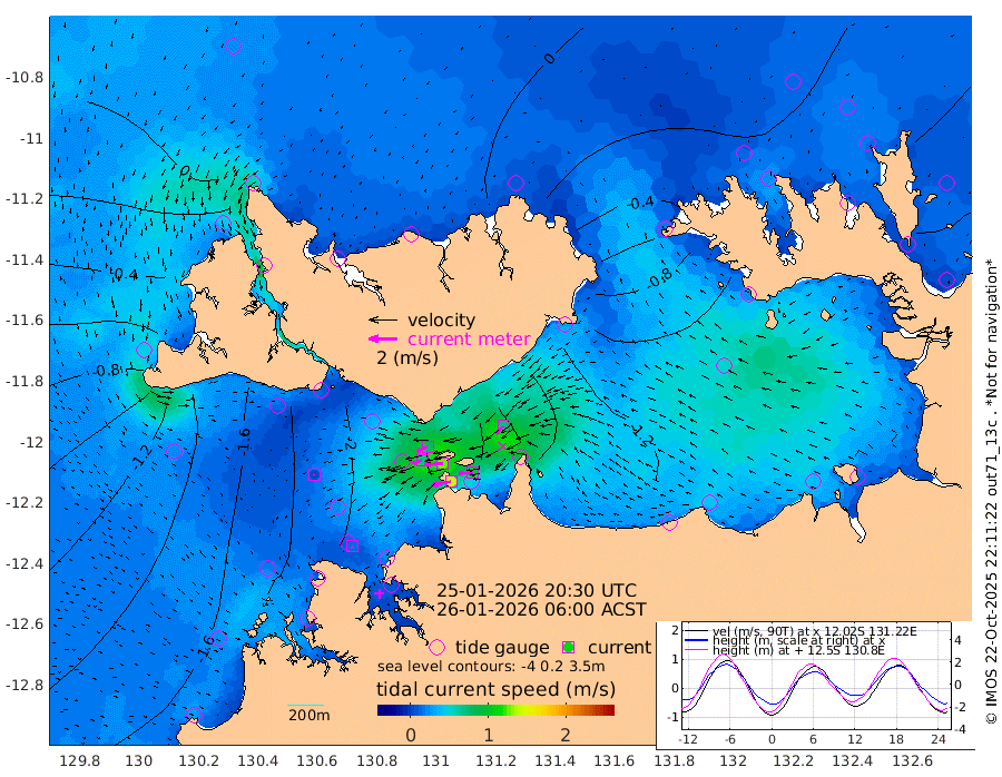 139cm/s -101T +4cm/s rms + 6cm/s 51T. Darwin_C1 52m 96cm/s -91T +4cm/s rms + 7cm/s -161T. Darwin_CW1 22m 71cm/s -106T +4cm/s rms + 8cm/s 61T. Darwin_CW2 34m 77cm/s -137T +3cm/s rms + 9cm/s 98T. Darwin_CW3 22m 125cm/s -90T +5cm/s rms + 7cm/s 88T. Darwin_C3 56m 81cm/s -116T +2cm/s rms + 9cm/s -126T. Darwin_CTbW 22m 7cm/s 179T +1cm/s rms + 1cm/s -47T. DARBGF 30m 13cm/s 162T +4cm/s rms + 3cm/s 80T. NRSDAR 19m 12cm Goodrich Bank -147cm Point Jenny -144cm Native Point -154cm Fish Reef -170cm Tapa Bay -57cm Point Fawcett (Offshore) -185cm Burge Point -144cm Munkunuwa -125cm Beagle A -185cm Parsons Bank -183cm Fenton Patches -194cm Hancox Shoal Area -200cm Nightcliff -206cm Darwin -177cm Charles Point Patches -179cm Glyde Point -183cm Chambers Bay -182cm Point Stuart -168cm Cape Hotham -171cm Christine Reef -199cm West Alligator Head -200cm East Field Island -154cm Two Hills Bay -145cm Camp Point -159cm Medina Inlet South -42cm South Barlow Point -18cm St. Asaph Bay 11cm Cape Van Dieman 4cm Snake Bay 0cm Cache Point -23cm Point Jahleel (Off) -74cm Cape Don -27cm Port Essington -33cm Smith Point - West -32cm NW Peacock Island -9cm North Of Jones Shoal -5cm Peacock Island -57cm Point David -38cm D'urville Point -61cm Copeland Island -51cm One Tree Point