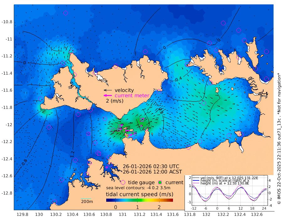 131cm/s 78T +4cm/s rms + 6cm/s 51T. Darwin_C1 52m 84cm/s 92T +4cm/s rms + 7cm/s -161T. Darwin_CW1 22m 75cm/s 72T +4cm/s rms + 8cm/s 61T. Darwin_CW2 34m 68cm/s 47T +3cm/s rms + 9cm/s 98T. Darwin_CW3 22m 118cm/s 89T +5cm/s rms + 7cm/s 88T. Darwin_C3 56m 70cm/s 65T +2cm/s rms + 9cm/s -126T. Darwin_CTbW 22m 9cm/s 52T +1cm/s rms + 1cm/s -47T. DARBGF 30m 8cm/s 1T +4cm/s rms + 3cm/s 80T. NRSDAR 19m -28cm Goodrich Bank 116cm Point Jenny 111cm Native Point 115cm Fish Reef 133cm Tapa Bay 38cm Point Fawcett (Offshore) 137cm Burge Point 118cm Munkunuwa 82cm Beagle A 147cm Parsons Bank 129cm Fenton Patches 153cm Hancox Shoal Area 152cm Nightcliff 155cm Darwin 134cm Charles Point Patches 124cm Glyde Point 127cm Chambers Bay 120cm Point Stuart 114cm Cape Hotham 119cm Christine Reef 131cm West Alligator Head 123cm East Field Island 102cm Two Hills Bay 92cm Camp Point 121cm Medina Inlet South 21cm South Barlow Point 2cm St. Asaph Bay -26cm Cape Van Dieman -25cm Snake Bay -17cm Cache Point 1cm Point Jahleel (Off) 48cm Cape Don 11cm Port Essington 16cm Smith Point - West 13cm NW Peacock Island -5cm North Of Jones Shoal 0cm Peacock Island 36cm Point David 20cm D'urville Point 41cm Copeland Island 31cm One Tree Point