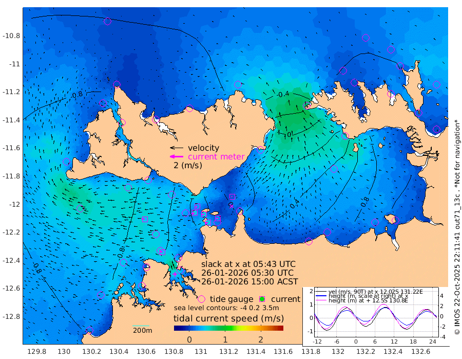 47cm/s -103T +4cm/s rms + 6cm/s 51T. Darwin_C1 52m 23cm/s -90T +4cm/s rms + 7cm/s -161T. Darwin_CW1 22m 46cm/s -110T +4cm/s rms + 8cm/s 61T. Darwin_CW2 34m 10cm/s -72T +3cm/s rms + 9cm/s 98T. Darwin_CW3 22m 46cm/s -94T +5cm/s rms + 7cm/s 88T. Darwin_C3 56m 26cm/s -118T +2cm/s rms + 9cm/s -126T. Darwin_CTbW 22m 44cm/s -89T +1cm/s rms + 1cm/s -47T. DARBGF 30m 43cm/s -60T +4cm/s rms + 3cm/s 80T. NRSDAR 19m -42cm Goodrich Bank -57cm Point Jenny -61cm Native Point -65cm Fish Reef -61cm Tapa Bay -62cm Point Fawcett (Offshore) -64cm Burge Point -89cm Munkunuwa -56cm Beagle A -71cm Parsons Bank -52cm Fenton Patches -42cm Hancox Shoal Area -45cm Nightcliff -61cm Darwin -63cm Charles Point Patches 5cm Glyde Point 82cm Chambers Bay 90cm Point Stuart 28cm Cape Hotham 78cm Christine Reef 107cm West Alligator Head 142cm East Field Island 49cm Two Hills Bay 49cm Camp Point -74cm Medina Inlet South -75cm South Barlow Point -58cm St. Asaph Bay -49cm Cape Van Dieman -56cm Snake Bay -37cm Cache Point -31cm Point Jahleel (Off) -17cm Cape Don -37cm Port Essington -35cm Smith Point - West -32cm NW Peacock Island -31cm North Of Jones Shoal -11cm Peacock Island -28cm Point David -36cm D'urville Point -23cm Copeland Island -28cm One Tree Point