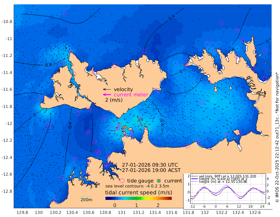 64cm/s -101T +4cm/s rms + 6cm/s 51T. Darwin_C1 52m 32cm/s -89T +4cm/s rms + 7cm/s -161T. Darwin_CW1 22m 36cm/s -109T +4cm/s rms + 8cm/s 61T. Darwin_CW2 34m 29cm/s -128T +3cm/s rms + 9cm/s 98T. Darwin_CW3 22m 55cm/s -92T +5cm/s rms + 7cm/s 88T. Darwin_C3 56m 40cm/s -115T +2cm/s rms + 9cm/s -126T. Darwin_CTbW 22m 5cm/s 118T +1cm/s rms + 1cm/s -47T. DARBGF 30m 9cm/s 155T +4cm/s rms + 3cm/s 80T. NRSDAR 19m 66cm Goodrich Bank -17cm Point Jenny -16cm Native Point -18cm Fish Reef -27cm Tapa Bay 34cm Point Fawcett (Offshore) -33cm Burge Point -33cm Munkunuwa 9cm Beagle A -49cm Parsons Bank -24cm Fenton Patches -46cm Hancox Shoal Area -42cm Nightcliff -43cm Darwin -19cm Charles Point Patches -38cm Glyde Point -47cm Chambers Bay -55cm Point Stuart -39cm Cape Hotham -42cm Christine Reef -63cm West Alligator Head -58cm East Field Island -37cm Two Hills Bay -24cm Camp Point -24cm Medina Inlet South 37cm South Barlow Point 53cm St. Asaph Bay 62cm Cape Van Dieman 60cm Snake Bay 61cm Cache Point 44cm Point Jahleel (Off) 7cm Cape Don 33cm Port Essington 32cm Smith Point - West 31cm NW Peacock Island 48cm North Of Jones Shoal 14cm Peacock Island 3cm Point David 26cm D'urville Point -1cm Copeland Island 10cm One Tree Point