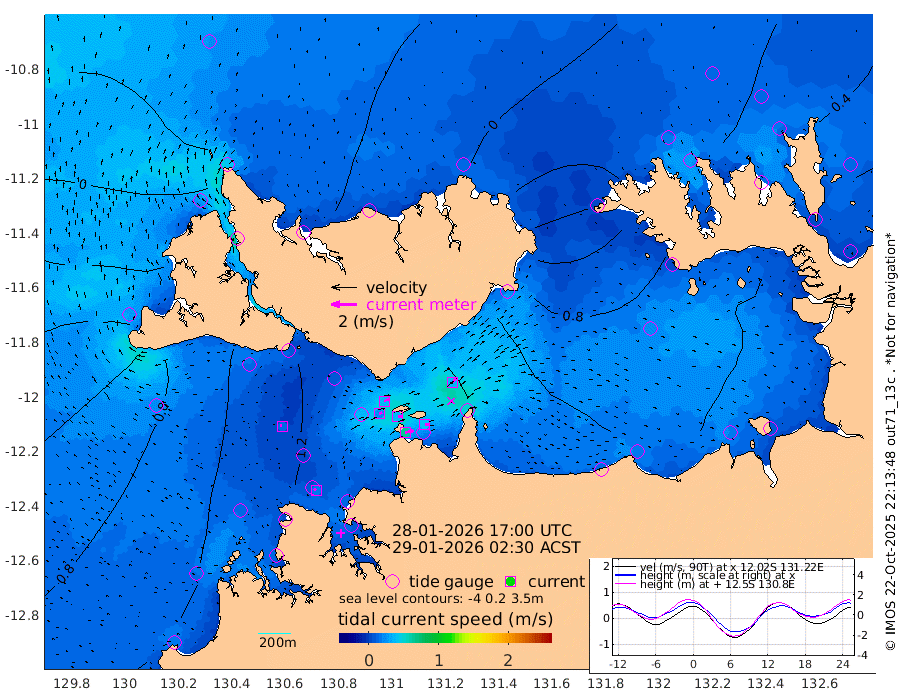 64cm/s 78T +4cm/s rms + 6cm/s 51T. Darwin_C1 52m 41cm/s 85T +4cm/s rms + 7cm/s -161T. Darwin_CW1 22m 23cm/s 73T +4cm/s rms + 8cm/s 61T. Darwin_CW2 34m 39cm/s 43T +3cm/s rms + 9cm/s 98T. Darwin_CW3 22m 39cm/s 91T +5cm/s rms + 7cm/s 88T. Darwin_C3 56m 39cm/s 63T +2cm/s rms + 9cm/s -126T. Darwin_CTbW 22m 12cm/s -77T +1cm/s rms + 1cm/s -47T. DARBGF 30m 17cm/s -44T +4cm/s rms + 3cm/s 80T. NRSDAR 19m -35cm Goodrich Bank 49cm Point Jenny 49cm Native Point 56cm Fish Reef 61cm Tapa Bay -7cm Point Fawcett (Offshore) 74cm Burge Point 45cm Munkunuwa 37cm Beagle A 79cm Parsons Bank 73cm Fenton Patches 81cm Hancox Shoal Area 77cm Nightcliff 86cm Darwin 63cm Charles Point Patches 89cm Glyde Point 97cm Chambers Bay 112cm Point Stuart 90cm Cape Hotham 90cm Christine Reef 122cm West Alligator Head 127cm East Field Island 87cm Two Hills Bay 80cm Camp Point 54cm Medina Inlet South -11cm South Barlow Point -29cm St. Asaph Bay -33cm Cape Van Dieman -27cm Snake Bay -27cm Cache Point -10cm Point Jahleel (Off) 31cm Cape Don 3cm Port Essington 3cm Smith Point - West 8cm NW Peacock Island -16cm North Of Jones Shoal -2cm Peacock Island 43cm Point David 13cm D'urville Point 47cm Copeland Island 34cm One Tree Point