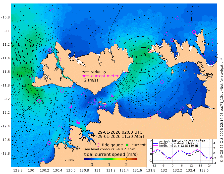 6cm/s -92T +4cm/s rms + 6cm/s 51T. Darwin_C1 52m 37cm/s -96T +4cm/s rms + 7cm/s -161T. Darwin_CW1 22m 12cm/s 69T +4cm/s rms + 8cm/s 61T. Darwin_CW2 34m 35cm/s -150T +3cm/s rms + 9cm/s 98T. Darwin_CW3 22m 8cm/s -69T +5cm/s rms + 7cm/s 88T. Darwin_C3 56m 6cm/s 67T +2cm/s rms + 9cm/s -126T. Darwin_CTbW 22m 41cm/s 96T +1cm/s rms + 1cm/s -47T. DARBGF 30m 45cm/s 123T +4cm/s rms + 3cm/s 80T. NRSDAR 19m 20cm Goodrich Bank -33cm Point Jenny -32cm Native Point -35cm Fish Reef -43cm Tapa Bay 13cm Point Fawcett (Offshore) -61cm Burge Point -9cm Munkunuwa -32cm Beagle A -46cm Parsons Bank -65cm Fenton Patches -64cm Hancox Shoal Area -64cm Nightcliff -72cm Darwin -58cm Charles Point Patches -97cm Glyde Point -135cm Chambers Bay -145cm Point Stuart -102cm Cape Hotham -126cm Christine Reef -158cm West Alligator Head -189cm East Field Island -103cm Two Hills Bay -117cm Camp Point -34cm Medina Inlet South 20cm South Barlow Point 25cm St. Asaph Bay 24cm Cape Van Dieman 22cm Snake Bay 15cm Cache Point 3cm Point Jahleel (Off) -31cm Cape Don 0cm Port Essington 4cm Smith Point - West -2cm NW Peacock Island 10cm North Of Jones Shoal 2cm Peacock Island -24cm Point David 0cm D'urville Point -27cm Copeland Island -20cm One Tree Point