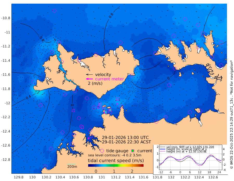 53cm/s -102T +4cm/s rms + 6cm/s 51T. Darwin_C1 52m 54cm/s -89T +4cm/s rms + 7cm/s -161T. Darwin_CW1 22m 16cm/s -112T +4cm/s rms + 8cm/s 61T. Darwin_CW2 34m 29cm/s -135T +3cm/s rms + 9cm/s 98T. Darwin_CW3 22m 22cm/s -90T +5cm/s rms + 7cm/s 88T. Darwin_C3 56m 27cm/s -114T +2cm/s rms + 9cm/s -126T. Darwin_CTbW 22m 5cm/s 98T +1cm/s rms + 1cm/s -47T. DARBGF 30m 4cm/s 155T +4cm/s rms + 3cm/s 80T. NRSDAR 19m 79cm Goodrich Bank 0cm Point Jenny 3cm Native Point 2cm Fish Reef -5cm Tapa Bay 50cm Point Fawcett (Offshore) -11cm Burge Point -9cm Munkunuwa 15cm Beagle A -11cm Parsons Bank -11cm Fenton Patches -15cm Hancox Shoal Area -21cm Nightcliff -7cm Darwin 12cm Charles Point Patches -13cm Glyde Point -26cm Chambers Bay -33cm Point Stuart -15cm Cape Hotham -25cm Christine Reef -43cm West Alligator Head -46cm East Field Island -10cm Two Hills Bay -7cm Camp Point 4cm Medina Inlet South 58cm South Barlow Point 64cm St. Asaph Bay 77cm Cape Van Dieman 82cm Snake Bay 76cm Cache Point 62cm Point Jahleel (Off) 38cm Cape Don 64cm Port Essington 61cm Smith Point - West 64cm NW Peacock Island 73cm North Of Jones Shoal 25cm Peacock Island 48cm Point David 61cm D'urville Point 43cm Copeland Island 54cm One Tree Point