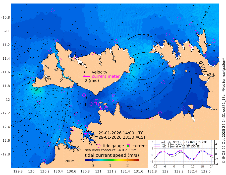 20cm/s -99T +4cm/s rms + 6cm/s 51T. Darwin_C1 52m 42cm/s -90T +4cm/s rms + 7cm/s -161T. Darwin_CW1 22m 1cm/s 161T +4cm/s rms + 8cm/s 61T. Darwin_CW2 34m 22cm/s -138T +3cm/s rms + 9cm/s 98T. Darwin_CW3 22m 5cm/s -92T +5cm/s rms + 7cm/s 88T. Darwin_C3 56m 2cm/s -93T +2cm/s rms + 9cm/s -126T. Darwin_CTbW 22m 19cm/s 94T +1cm/s rms + 1cm/s -47T. DARBGF 30m 17cm/s 127T +4cm/s rms + 3cm/s 80T. NRSDAR 19m 81cm Goodrich Bank 26cm Point Jenny 27cm Native Point 29cm Fish Reef 21cm Tapa Bay 65cm Point Fawcett (Offshore) 15cm Burge Point 18cm Munkunuwa 36cm Beagle A 20cm Parsons Bank 14cm Fenton Patches 10cm Hancox Shoal Area 4cm Nightcliff 19cm Darwin 35cm Charles Point Patches 3cm Glyde Point -23cm Chambers Bay -28cm Point Stuart -2cm Cape Hotham -22cm Christine Reef -39cm West Alligator Head -50cm East Field Island 1cm Two Hills Bay -4cm Camp Point 29cm Medina Inlet South 72cm South Barlow Point 71cm St. Asaph Bay 81cm Cape Van Dieman 87cm Snake Bay 81cm Cache Point 69cm Point Jahleel (Off) 51cm Cape Don 76cm Port Essington 74cm Smith Point - West 76cm NW Peacock Island 80cm North Of Jones Shoal 28cm Peacock Island 68cm Point David 77cm D'urville Point 63cm Copeland Island 71cm One Tree Point