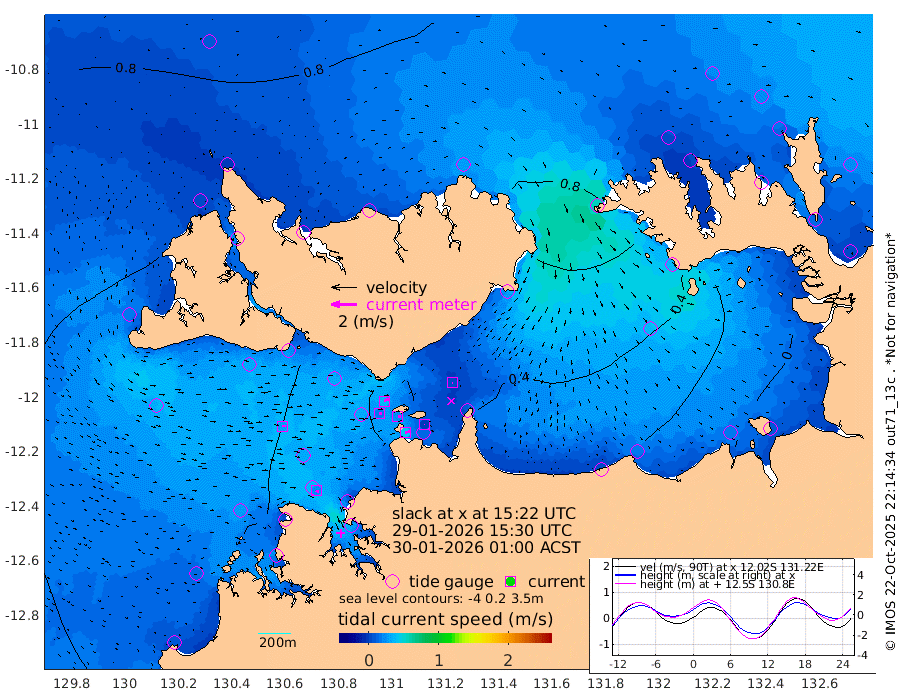 42cm/s 78T +4cm/s rms + 6cm/s 51T. Darwin_C1 52m 2cm/s -2T +4cm/s rms + 7cm/s -161T. Darwin_CW1 22m 20cm/s 77T +4cm/s rms + 8cm/s 61T. Darwin_CW2 34m 3cm/s 114T +3cm/s rms + 9cm/s 98T. Darwin_CW3 22m 21cm/s 90T +5cm/s rms + 7cm/s 88T. Darwin_C3 56m 39cm/s 62T +2cm/s rms + 9cm/s -126T. Darwin_CTbW 22m 26cm/s 92T +1cm/s rms + 1cm/s -47T. DARBGF 30m 23cm/s 123T +4cm/s rms + 3cm/s 80T. NRSDAR 19m 58cm Goodrich Bank 68cm Point Jenny 68cm Native Point 73cm Fish Reef 68cm Tapa Bay 72cm Point Fawcett (Offshore) 67cm Burge Point 61cm Munkunuwa 68cm Beagle A 74cm Parsons Bank 65cm Fenton Patches 63cm Hancox Shoal Area 58cm Nightcliff 73cm Darwin 77cm Charles Point Patches 48cm Glyde Point 13cm Chambers Bay 15cm Point Stuart 39cm Cape Hotham 13cm Christine Reef 7cm West Alligator Head -9cm East Field Island 35cm Two Hills Bay 25cm Camp Point 71cm Medina Inlet South 72cm South Barlow Point 61cm St. Asaph Bay 62cm Cape Van Dieman 69cm Snake Bay 64cm Cache Point 60cm Point Jahleel (Off) 63cm Cape Don 73cm Port Essington 73cm Smith Point - West 76cm NW Peacock Island 66cm North Of Jones Shoal 25cm Peacock Island 83cm Point David 80cm D'urville Point 81cm Copeland Island 82cm One Tree Point