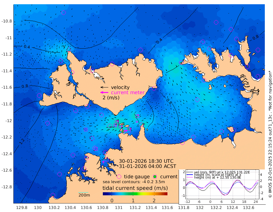105cm/s 77T +4cm/s rms + 6cm/s 51T. Darwin_C1 52m 71cm/s 87T +4cm/s rms + 7cm/s -161T. Darwin_CW1 22m 36cm/s 75T +4cm/s rms + 8cm/s 61T. Darwin_CW2 34m 53cm/s 44T +3cm/s rms + 9cm/s 98T. Darwin_CW3 22m 48cm/s 89T +5cm/s rms + 7cm/s 88T. Darwin_C3 56m 60cm/s 64T +2cm/s rms + 9cm/s -126T. Darwin_CTbW 22m 18cm/s 87T +1cm/s rms + 1cm/s -47T. DARBGF 30m 18cm/s 111T +4cm/s rms + 3cm/s 80T. NRSDAR 19m -4cm Goodrich Bank 100cm Point Jenny 99cm Native Point 109cm Fish Reef 111cm Tapa Bay 46cm Point Fawcett (Offshore) 121cm Burge Point 97cm Munkunuwa 88cm Beagle A 124cm Parsons Bank 119cm Fenton Patches 118cm Hancox Shoal Area 117cm Nightcliff 130cm Darwin 116cm Charles Point Patches 101cm Glyde Point 71cm Chambers Bay 79cm Point Stuart 89cm Cape Hotham 66cm Christine Reef 79cm West Alligator Head 69cm East Field Island 74cm Two Hills Bay 70cm Camp Point 105cm Medina Inlet South 38cm South Barlow Point 16cm St. Asaph Bay 3cm Cape Van Dieman 8cm Snake Bay 7cm Cache Point 18cm Point Jahleel (Off) 53cm Cape Don 36cm Port Essington 35cm Smith Point - West 38cm NW Peacock Island 15cm North Of Jones Shoal 9cm Peacock Island 69cm Point David 46cm D'urville Point 72cm Copeland Island 60cm One Tree Point