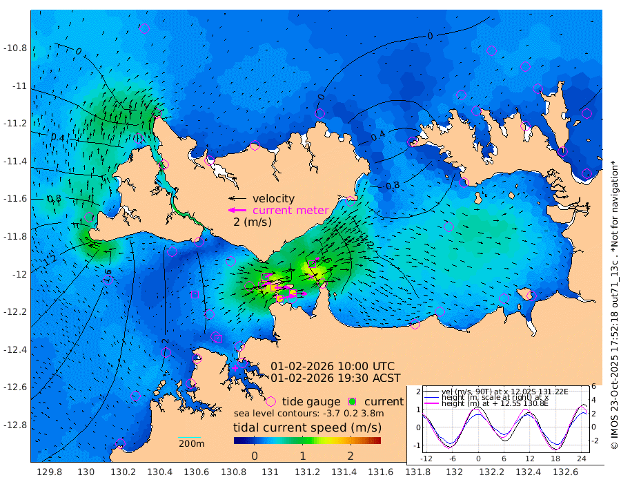 174cm/s 79T +4cm/s rms + 6cm/s 51T. Darwin_C1 52m 158cm/s 92T +4cm/s rms + 7cm/s -161T. Darwin_CW1 22m 108cm/s 71T +4cm/s rms + 8cm/s 61T. Darwin_CW2 34m 105cm/s 46T +3cm/s rms + 9cm/s 98T. Darwin_CW3 22m 170cm/s 90T +5cm/s rms + 7cm/s 88T. Darwin_C3 56m 89cm/s 66T +2cm/s rms + 9cm/s -126T. Darwin_CTbW 22m 13cm/s 40T +1cm/s rms + 1cm/s -47T. DARBGF 30m 12cm/s -17T +4cm/s rms + 3cm/s 80T. NRSDAR 19m -8cm Goodrich Bank 195cm Point Jenny 193cm Native Point 205cm Fish Reef 221cm Tapa Bay 89cm Point Fawcett (Offshore) 248cm Burge Point 205cm Munkunuwa 168cm Beagle A 226cm Parsons Bank 234cm Fenton Patches 229cm Hancox Shoal Area 246cm Nightcliff 259cm Darwin 230cm Charles Point Patches 203cm Glyde Point 187cm Chambers Bay 181cm Point Stuart 178cm Cape Hotham 174cm Christine Reef 198cm West Alligator Head 196cm East Field Island 150cm Two Hills Bay 157cm Camp Point 214cm Medina Inlet South 64cm South Barlow Point 39cm St. Asaph Bay -7cm Cape Van Dieman -4cm Snake Bay -1cm Cache Point 19cm Point Jahleel (Off) 70cm Cape Don 14cm Port Essington 12cm Smith Point - West 5cm NW Peacock Island -5cm North Of Jones Shoal -2cm Peacock Island 15cm Point David 7cm D'urville Point 16cm Copeland Island 16cm One Tree Point