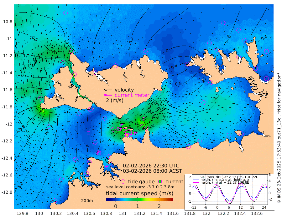 141cm/s 79T +4cm/s rms + 6cm/s 51T. Darwin_C1 52m 106cm/s 92T +4cm/s rms + 7cm/s -161T. Darwin_CW1 22m 79cm/s 70T +4cm/s rms + 8cm/s 61T. Darwin_CW2 34m 91cm/s 44T +3cm/s rms + 9cm/s 98T. Darwin_CW3 22m 118cm/s 89T +5cm/s rms + 7cm/s 88T. Darwin_C3 56m 66cm/s 65T +2cm/s rms + 9cm/s -126T. Darwin_CTbW 22m 11cm/s -51T +1cm/s rms + 1cm/s -47T. DARBGF 30m 24cm/s -43T +4cm/s rms + 3cm/s 80T. NRSDAR 19m -66cm Goodrich Bank 116cm Point Jenny 112cm Native Point 137cm Fish Reef 147cm Tapa Bay 12cm Point Fawcett (Offshore) 173cm Burge Point 134cm Munkunuwa 83cm Beagle A 182cm Parsons Bank 158cm Fenton Patches 183cm Hancox Shoal Area 177cm Nightcliff 205cm Darwin 169cm Charles Point Patches 167cm Glyde Point 163cm Chambers Bay 172cm Point Stuart 158cm Cape Hotham 142cm Christine Reef 185cm West Alligator Head 185cm East Field Island 135cm Two Hills Bay 131cm Camp Point 144cm Medina Inlet South 0cm South Barlow Point -34cm St. Asaph Bay -63cm Cape Van Dieman -56cm Snake Bay -54cm Cache Point -25cm Point Jahleel (Off) 47cm Cape Don 0cm Port Essington -4cm Smith Point - West -1cm NW Peacock Island -30cm North Of Jones Shoal -6cm Peacock Island 50cm Point David 8cm D'urville Point 58cm Copeland Island 40cm One Tree Point