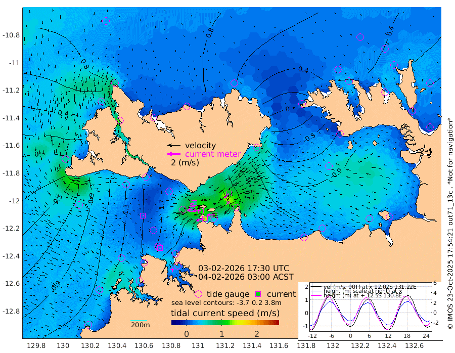 137cm/s -101T +4cm/s rms + 6cm/s 51T. Darwin_C1 52m 111cm/s -92T +4cm/s rms + 7cm/s -161T. Darwin_CW1 22m 69cm/s -107T +4cm/s rms + 8cm/s 61T. Darwin_CW2 34m 92cm/s -137T +3cm/s rms + 9cm/s 98T. Darwin_CW3 22m 119cm/s -91T +5cm/s rms + 7cm/s 88T. Darwin_C3 56m 66cm/s -116T +2cm/s rms + 9cm/s -126T. Darwin_CTbW 22m 15cm/s 121T +1cm/s rms + 1cm/s -47T. DARBGF 30m 22cm/s 149T +4cm/s rms + 3cm/s 80T. NRSDAR 19m 73cm Goodrich Bank -106cm Point Jenny -103cm Native Point -127cm Fish Reef -133cm Tapa Bay -1cm Point Fawcett (Offshore) -162cm Burge Point -127cm Munkunuwa -83cm Beagle A -163cm Parsons Bank -156cm Fenton Patches -165cm Hancox Shoal Area -167cm Nightcliff -185cm Darwin -146cm Charles Point Patches -156cm Glyde Point -163cm Chambers Bay -170cm Point Stuart -147cm Cape Hotham -145cm Christine Reef -190cm West Alligator Head -195cm East Field Island -128cm Two Hills Bay -119cm Camp Point -132cm Medina Inlet South 10cm South Barlow Point 39cm St. Asaph Bay 73cm Cape Van Dieman 68cm Snake Bay 64cm Cache Point 35cm Point Jahleel (Off) -26cm Cape Don 28cm Port Essington 26cm Smith Point - West 29cm NW Peacock Island 53cm North Of Jones Shoal 16cm Peacock Island 2cm Point David 23cm D'urville Point -5cm Copeland Island 7cm One Tree Point