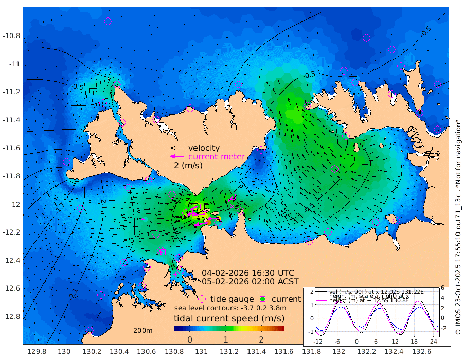 215cm/s -101T +4cm/s rms + 6cm/s 51T. Darwin_C1 52m 160cm/s -90T +4cm/s rms + 7cm/s -161T. Darwin_CW1 22m 115cm/s -107T +4cm/s rms + 8cm/s 61T. Darwin_CW2 34m 93cm/s -134T +3cm/s rms + 9cm/s 98T. Darwin_CW3 22m 161cm/s -91T +5cm/s rms + 7cm/s 88T. Darwin_C3 56m 119cm/s -115T +2cm/s rms + 9cm/s -126T. Darwin_CTbW 22m 57cm/s -93T +1cm/s rms + 1cm/s -47T. DARBGF 30m 50cm/s -68T +4cm/s rms + 3cm/s 80T. NRSDAR 19m -1cm Goodrich Bank -204cm Point Jenny -201cm Native Point -228cm Fish Reef -230cm Tapa Bay -113cm Point Fawcett (Offshore) -247cm Burge Point -230cm Munkunuwa -182cm Beagle A -250cm Parsons Bank -240cm Fenton Patches -236cm Hancox Shoal Area -250cm Nightcliff -266cm Darwin -243cm Charles Point Patches -172cm Glyde Point -102cm Chambers Bay -91cm Point Stuart -139cm Cape Hotham -89cm Christine Reef -92cm West Alligator Head -61cm East Field Island -98cm Two Hills Bay -89cm Camp Point -232cm Medina Inlet South -98cm South Barlow Point -60cm St. Asaph Bay -9cm Cape Van Dieman -16cm Snake Bay -12cm Cache Point -30cm Point Jahleel (Off) -73cm Cape Don -42cm Port Essington -46cm Smith Point - West -39cm NW Peacock Island -21cm North Of Jones Shoal -10cm Peacock Island -54cm Point David -49cm D'urville Point -58cm Copeland Island -53cm One Tree Point