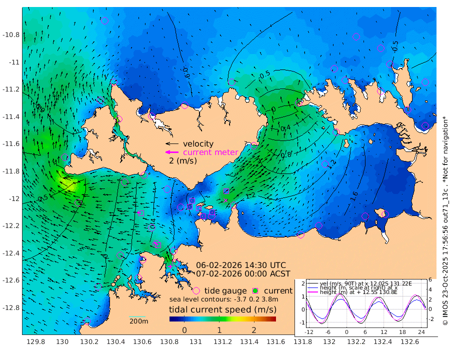 7cm/s -107T +4cm/s rms + 6cm/s 51T. Darwin_C1 52m 6cm/s -78T +4cm/s rms + 7cm/s -161T. Darwin_CW1 22m 2cm/s -115T +4cm/s rms + 8cm/s 61T. Darwin_CW2 34m 23cm/s 36T +3cm/s rms + 9cm/s 98T. Darwin_CW3 22m 24cm/s 97T +5cm/s rms + 7cm/s 88T. Darwin_C3 56m 8cm/s -119T +2cm/s rms + 9cm/s -126T. Darwin_CTbW 22m 63cm/s -84T +1cm/s rms + 1cm/s -47T. DARBGF 30m 72cm/s -53T +4cm/s rms + 3cm/s 80T. NRSDAR 19m -82cm Goodrich Bank -34cm Point Jenny -36cm Native Point -22cm Fish Reef -22cm Tapa Bay -83cm Point Fawcett (Offshore) -1cm Burge Point -36cm Munkunuwa -49cm Beagle A 4cm Parsons Bank -6cm Fenton Patches 16cm Hancox Shoal Area -1cm Nightcliff 23cm Darwin -8cm Charles Point Patches 75cm Glyde Point 150cm Chambers Bay 178cm Point Stuart 93cm Cape Hotham 133cm Christine Reef 205cm West Alligator Head 241cm East Field Island 114cm Two Hills Bay 103cm Camp Point -21cm Medina Inlet South -89cm South Barlow Point -96cm St. Asaph Bay -88cm Cape Van Dieman -85cm Snake Bay -77cm Cache Point -54cm Point Jahleel (Off) -3cm Cape Don -47cm Port Essington -53cm Smith Point - West -47cm NW Peacock Island -65cm North Of Jones Shoal -21cm Peacock Island -20cm Point David -49cm D'urville Point -15cm Copeland Island -22cm One Tree Point