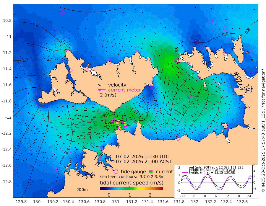 173cm/s 78T +4cm/s rms + 6cm/s 51T. Darwin_C1 52m 129cm/s 90T +4cm/s rms + 7cm/s -161T. Darwin_CW1 22m 110cm/s 74T +4cm/s rms + 8cm/s 61T. Darwin_CW2 34m 90cm/s 46T +3cm/s rms + 9cm/s 98T. Darwin_CW3 22m 168cm/s 89T +5cm/s rms + 7cm/s 88T. Darwin_C3 56m 89cm/s 65T +2cm/s rms + 9cm/s -126T. Darwin_CTbW 22m 53cm/s 85T +1cm/s rms + 1cm/s -47T. DARBGF 30m 50cm/s 111T +4cm/s rms + 3cm/s 80T. NRSDAR 19m 46cm Goodrich Bank 198cm Point Jenny 198cm Native Point 215cm Fish Reef 220cm Tapa Bay 131cm Point Fawcett (Offshore) 234cm Burge Point 218cm Munkunuwa 184cm Beagle A 233cm Parsons Bank 227cm Fenton Patches 217cm Hancox Shoal Area 235cm Nightcliff 253cm Darwin 238cm Charles Point Patches 156cm Glyde Point 80cm Chambers Bay 60cm Point Stuart 117cm Cape Hotham 72cm Christine Reef 56cm West Alligator Head 25cm East Field Island 82cm Two Hills Bay 81cm Camp Point 227cm Medina Inlet South 129cm South Barlow Point 93cm St. Asaph Bay 51cm Cape Van Dieman 64cm Snake Bay 50cm Cache Point 60cm Point Jahleel (Off) 87cm Cape Don 69cm Port Essington 71cm Smith Point - West 64cm NW Peacock Island 55cm North Of Jones Shoal 21cm Peacock Island 67cm Point David 72cm D'urville Point 66cm Copeland Island 71cm One Tree Point