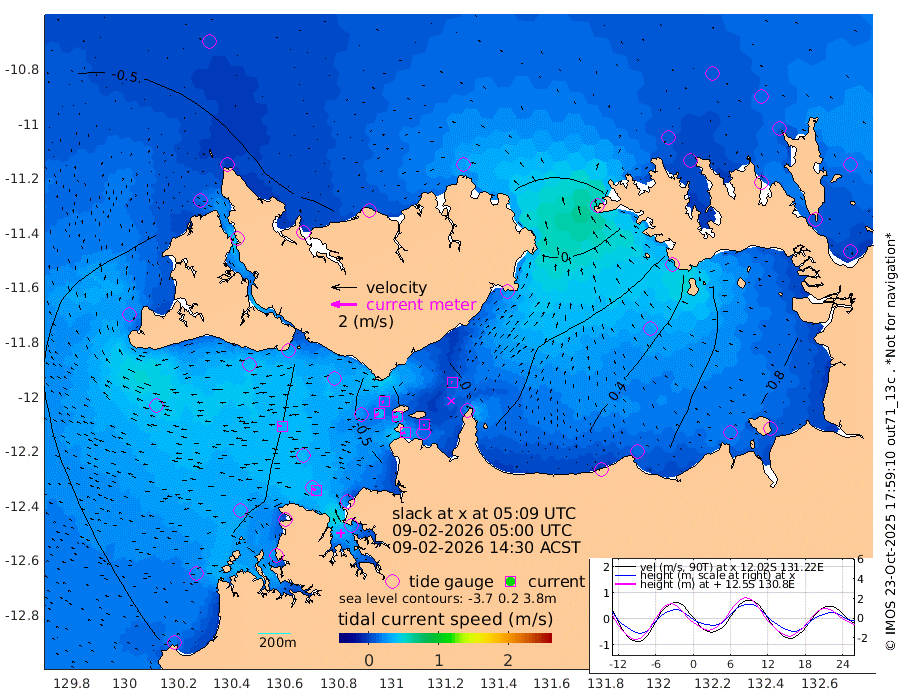 29cm/s -105T +4cm/s rms + 6cm/s 51T. Darwin_C1 52m 9cm/s -91T +4cm/s rms + 7cm/s -161T. Darwin_CW1 22m 39cm/s -111T +4cm/s rms + 8cm/s 61T. Darwin_CW2 34m 8cm/s -75T +3cm/s rms + 9cm/s 98T. Darwin_CW3 22m 33cm/s -95T +5cm/s rms + 7cm/s 88T. Darwin_C3 56m 18cm/s -120T +2cm/s rms + 9cm/s -126T. Darwin_CTbW 22m 32cm/s -89T +1cm/s rms + 1cm/s -47T. DARBGF 30m 30cm/s -61T +4cm/s rms + 3cm/s 80T. NRSDAR 19m -32cm Goodrich Bank -49cm Point Jenny -53cm Native Point -46cm Fish Reef -54cm Tapa Bay -39cm Point Fawcett (Offshore) -54cm Burge Point -67cm Munkunuwa -48cm Beagle A -60cm Parsons Bank -51cm Fenton Patches -45cm Hancox Shoal Area -50cm Nightcliff -55cm Darwin -59cm Charles Point Patches 2cm Glyde Point 63cm Chambers Bay 83cm Point Stuart 28cm Cape Hotham 55cm Christine Reef 99cm West Alligator Head 124cm East Field Island 48cm Two Hills Bay 34cm Camp Point -59cm Medina Inlet South -59cm South Barlow Point -43cm St. Asaph Bay -36cm Cape Van Dieman -42cm Snake Bay -24cm Cache Point -21cm Point Jahleel (Off) -10cm Cape Don -28cm Port Essington -28cm Smith Point - West -27cm NW Peacock Island -22cm North Of Jones Shoal -8cm Peacock Island -24cm Point David -31cm D'urville Point -21cm Copeland Island -21cm One Tree Point