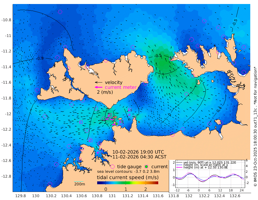 112cm/s -102T +4cm/s rms + 6cm/s 51T. Darwin_C1 52m 68cm/s -90T +4cm/s rms + 7cm/s -161T. Darwin_CW1 22m 71cm/s -107T +4cm/s rms + 8cm/s 61T. Darwin_CW2 34m 42cm/s -126T +3cm/s rms + 9cm/s 98T. Darwin_CW3 22m 97cm/s -92T +5cm/s rms + 7cm/s 88T. Darwin_C3 56m 70cm/s -115T +2cm/s rms + 9cm/s -126T. Darwin_CTbW 22m 40cm/s -93T +1cm/s rms + 1cm/s -47T. DARBGF 30m 32cm/s -67T +4cm/s rms + 3cm/s 80T. NRSDAR 19m -60cm Goodrich Bank -125cm Point Jenny -127cm Native Point -120cm Fish Reef -138cm Tapa Bay -103cm Point Fawcett (Offshore) -129cm Burge Point -133cm Munkunuwa -114cm Beagle A -131cm Parsons Bank -125cm Fenton Patches -129cm Hancox Shoal Area -142cm Nightcliff -137cm Darwin -137cm Charles Point Patches -78cm Glyde Point -32cm Chambers Bay -10cm Point Stuart -55cm Cape Hotham -34cm Christine Reef -6cm West Alligator Head 19cm East Field Island -35cm Two Hills Bay -36cm Camp Point -133cm Medina Inlet South -98cm South Barlow Point -87cm St. Asaph Bay -62cm Cape Van Dieman -69cm Snake Bay -60cm Cache Point -61cm Point Jahleel (Off) -58cm Cape Don -55cm Port Essington -61cm Smith Point - West -56cm NW Peacock Island -57cm North Of Jones Shoal -19cm Peacock Island -48cm Point David -58cm D'urville Point -45cm Copeland Island -49cm One Tree Point