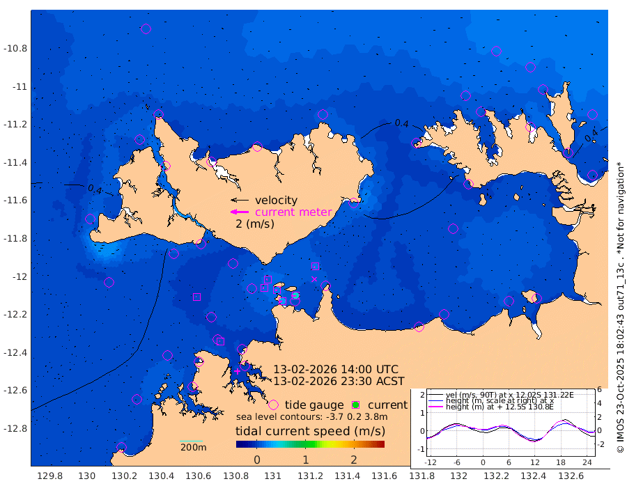 29cm/s -100T +4cm/s rms + 6cm/s 51T. Darwin_C1 52m 53cm/s -90T +4cm/s rms + 7cm/s -161T. Darwin_CW1 22m 12cm/s -109T +4cm/s rms + 8cm/s 61T. Darwin_CW2 34m 18cm/s -138T +3cm/s rms + 9cm/s 98T. Darwin_CW3 22m 20cm/s -93T +5cm/s rms + 7cm/s 88T. Darwin_C3 56m 10cm/s -111T +2cm/s rms + 9cm/s -126T. Darwin_CTbW 22m 5cm/s -93T +1cm/s rms + 1cm/s -47T. DARBGF 30m 6cm/s -65T +4cm/s rms + 3cm/s 80T. NRSDAR 19m 44cm Goodrich Bank -3cm Point Jenny 0cm Native Point -13cm Fish Reef -4cm Tapa Bay 17cm Point Fawcett (Offshore) -9cm Burge Point -9cm Munkunuwa -1cm Beagle A -3cm Parsons Bank -12cm Fenton Patches -4cm Hancox Shoal Area -12cm Nightcliff -8cm Darwin -2cm Charles Point Patches -4cm Glyde Point -7cm Chambers Bay -7cm Point Stuart -1cm Cape Hotham -1cm Christine Reef -12cm West Alligator Head -14cm East Field Island 4cm Two Hills Bay 5cm Camp Point -6cm Medina Inlet South 27cm South Barlow Point 28cm St. Asaph Bay 43cm Cape Van Dieman 49cm Snake Bay 41cm Cache Point 37cm Point Jahleel (Off) 25cm Cape Don 38cm Port Essington 37cm Smith Point - West 42cm NW Peacock Island 40cm North Of Jones Shoal 14cm Peacock Island 47cm Point David 41cm D'urville Point 43cm Copeland Island 43cm One Tree Point