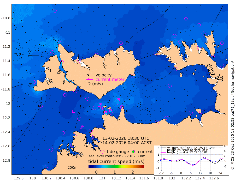 38cm/s 77T +4cm/s rms + 6cm/s 51T. Darwin_C1 52m 31cm/s 87T +4cm/s rms + 7cm/s -161T. Darwin_CW1 22m 7cm/s 74T +4cm/s rms + 8cm/s 61T. Darwin_CW2 34m 27cm/s 38T +3cm/s rms + 9cm/s 98T. Darwin_CW3 22m 9cm/s 93T +5cm/s rms + 7cm/s 88T. Darwin_C3 56m 21cm/s 65T +2cm/s rms + 9cm/s -126T. Darwin_CTbW 22m 1cm/s 101T +1cm/s rms + 1cm/s -47T. DARBGF 30m 2cm/s 88T +4cm/s rms + 3cm/s 80T. NRSDAR 19m -32cm Goodrich Bank 9cm Point Jenny 8cm Native Point 16cm Fish Reef 16cm Tapa Bay -11cm Point Fawcett (Offshore) 17cm Burge Point 7cm Munkunuwa 2cm Beagle A 22cm Parsons Bank 17cm Fenton Patches 26cm Hancox Shoal Area 32cm Nightcliff 29cm Darwin 18cm Charles Point Patches 31cm Glyde Point 37cm Chambers Bay 43cm Point Stuart 35cm Cape Hotham 26cm Christine Reef 46cm West Alligator Head 48cm East Field Island 32cm Two Hills Bay 30cm Camp Point 15cm Medina Inlet South -16cm South Barlow Point -25cm St. Asaph Bay -29cm Cape Van Dieman -23cm Snake Bay -26cm Cache Point -16cm Point Jahleel (Off) 7cm Cape Don -6cm Port Essington -8cm Smith Point - West -5cm NW Peacock Island -9cm North Of Jones Shoal -1cm Peacock Island 23cm Point David -1cm D'urville Point 26cm Copeland Island 19cm One Tree Point