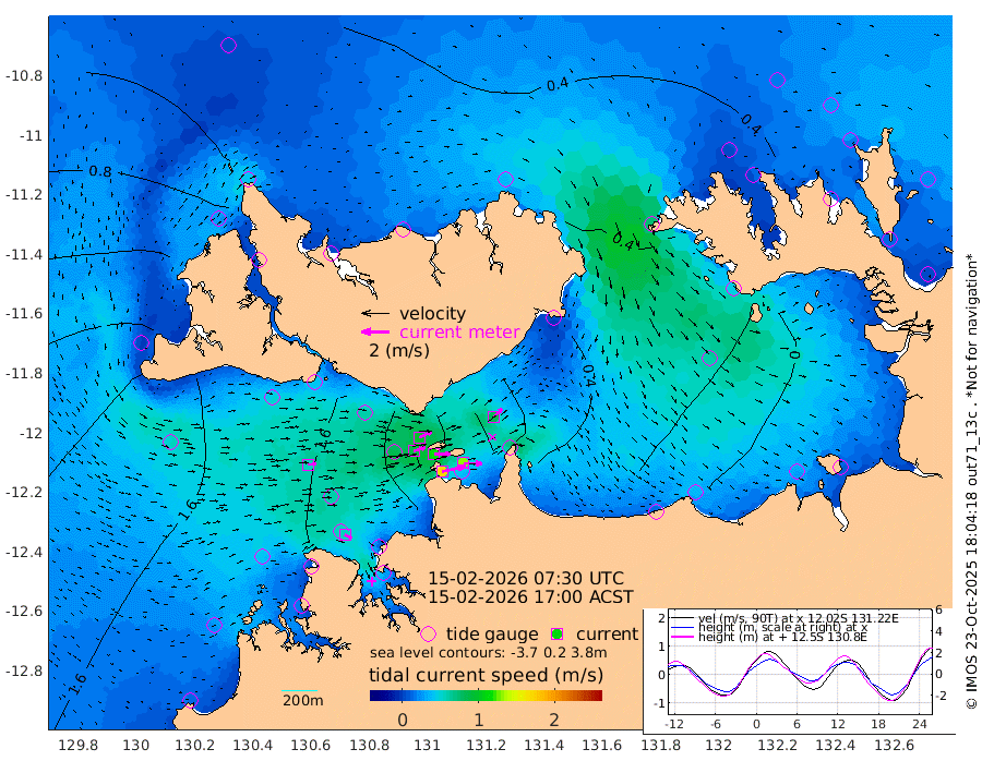 173cm/s 77T +4cm/s rms + 6cm/s 51T. Darwin_C1 52m 132cm/s 92T +4cm/s rms + 7cm/s -161T. Darwin_CW1 22m 87cm/s 73T +4cm/s rms + 8cm/s 61T. Darwin_CW2 34m 85cm/s 47T +3cm/s rms + 9cm/s 98T. Darwin_CW3 22m 118cm/s 89T +5cm/s rms + 7cm/s 88T. Darwin_C3 56m 97cm/s 66T +2cm/s rms + 9cm/s -126T. Darwin_CTbW 22m 55cm/s 87T +1cm/s rms + 1cm/s -47T. DARBGF 30m 55cm/s 116T +4cm/s rms + 3cm/s 80T. NRSDAR 19m 39cm Goodrich Bank 182cm Point Jenny 181cm Native Point 182cm Fish Reef 191cm Tapa Bay 122cm Point Fawcett (Offshore) 194cm Burge Point 178cm Munkunuwa 172cm Beagle A 174cm Parsons Bank 197cm Fenton Patches 172cm Hancox Shoal Area 201cm Nightcliff 190cm Darwin 186cm Charles Point Patches 121cm Glyde Point 68cm Chambers Bay 43cm Point Stuart 85cm Cape Hotham 69cm Christine Reef 42cm West Alligator Head 21cm East Field Island 56cm Two Hills Bay 65cm Camp Point 183cm Medina Inlet South 103cm South Barlow Point 87cm St. Asaph Bay 43cm Cape Van Dieman 42cm Snake Bay 44cm Cache Point 46cm Point Jahleel (Off) 60cm Cape Don 38cm Port Essington 44cm Smith Point - West 33cm NW Peacock Island 33cm North Of Jones Shoal 11cm Peacock Island 16cm Point David 37cm D'urville Point 16cm Copeland Island 22cm One Tree Point