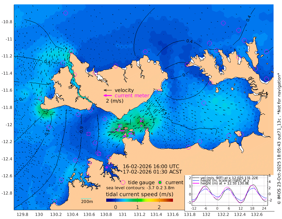 107cm/s -101T +4cm/s rms + 6cm/s 51T. Darwin_C1 52m 101cm/s -92T +4cm/s rms + 7cm/s -161T. Darwin_CW1 22m 58cm/s -107T +4cm/s rms + 8cm/s 61T. Darwin_CW2 34m 65cm/s -136T +3cm/s rms + 9cm/s 98T. Darwin_CW3 22m 94cm/s -91T +5cm/s rms + 7cm/s 88T. Darwin_C3 56m 54cm/s -115T +2cm/s rms + 9cm/s -126T. Darwin_CTbW 22m 6cm/s -158T +1cm/s rms + 1cm/s -47T. DARBGF 30m 7cm/s -161T +4cm/s rms + 3cm/s 80T. NRSDAR 19m 60cm Goodrich Bank -75cm Point Jenny -72cm Native Point -92cm Fish Reef -96cm Tapa Bay -4cm Point Fawcett (Offshore) -114cm Burge Point -97cm Munkunuwa -58cm Beagle A -112cm Parsons Bank -110cm Fenton Patches -115cm Hancox Shoal Area -130cm Nightcliff -133cm Darwin -105cm Charles Point Patches -98cm Glyde Point -95cm Chambers Bay -91cm Point Stuart -88cm Cape Hotham -80cm Christine Reef -104cm West Alligator Head -104cm East Field Island -68cm Two Hills Bay -68cm Camp Point -100cm Medina Inlet South 5cm South Barlow Point 26cm St. Asaph Bay 59cm Cape Van Dieman 54cm Snake Bay 56cm Cache Point 35cm Point Jahleel (Off) -4cm Cape Don 34cm Port Essington 34cm Smith Point - West 39cm NW Peacock Island 43cm North Of Jones Shoal 14cm Peacock Island 25cm Point David 35cm D'urville Point 20cm Copeland Island 23cm One Tree Point