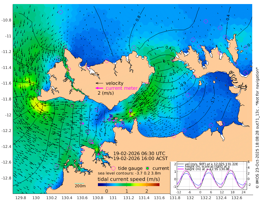 31cm/s -101T +4cm/s rms + 6cm/s 51T. Darwin_C1 52m 28cm/s -95T +4cm/s rms + 7cm/s -161T. Darwin_CW1 22m 19cm/s -105T +4cm/s rms + 8cm/s 61T. Darwin_CW2 34m 61cm/s -141T +3cm/s rms + 9cm/s 98T. Darwin_CW3 22m 66cm/s -90T +5cm/s rms + 7cm/s 88T. Darwin_C3 56m 1cm/s -100T +2cm/s rms + 9cm/s -126T. Darwin_CTbW 22m 65cm/s 98T +1cm/s rms + 1cm/s -47T. DARBGF 30m 74cm/s 129T +4cm/s rms + 3cm/s 80T. NRSDAR 19m 87cm Goodrich Bank -3cm Point Jenny 0cm Native Point -11cm Fish Reef -31cm Tapa Bay 68cm Point Fawcett (Offshore) -42cm Burge Point -4cm Munkunuwa 31cm Beagle A -56cm Parsons Bank -32cm Fenton Patches -80cm Hancox Shoal Area -63cm Nightcliff -88cm Darwin -57cm Charles Point Patches -114cm Glyde Point -186cm Chambers Bay -197cm Point Stuart -125cm Cape Hotham -161cm Christine Reef -223cm West Alligator Head -255cm East Field Island -134cm Two Hills Bay -135cm Camp Point -27cm Medina Inlet South 76cm South Barlow Point 89cm St. Asaph Bay 93cm Cape Van Dieman 87cm Snake Bay 81cm Cache Point 53cm Point Jahleel (Off) -14cm Cape Don 37cm Port Essington 44cm Smith Point - West 37cm NW Peacock Island 53cm North Of Jones Shoal 16cm Peacock Island -7cm Point David 36cm D'urville Point -14cm Copeland Island -3cm One Tree Point