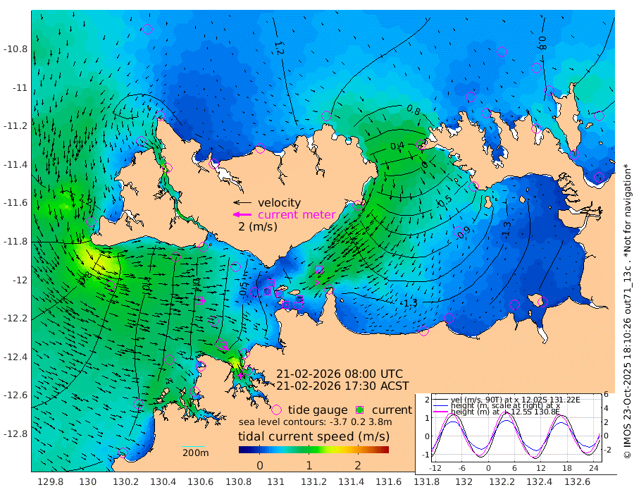 8cm/s 80T +4cm/s rms + 6cm/s 51T. Darwin_C1 52m 10cm/s 90T +4cm/s rms + 7cm/s -161T. Darwin_CW1 22m 10cm/s 74T +4cm/s rms + 8cm/s 61T. Darwin_CW2 34m 40cm/s -142T +3cm/s rms + 9cm/s 98T. Darwin_CW3 22m 21cm/s -86T +5cm/s rms + 7cm/s 88T. Darwin_C3 56m 20cm/s 62T +2cm/s rms + 9cm/s -126T. Darwin_CTbW 22m 75cm/s 96T +1cm/s rms + 1cm/s -47T. DARBGF 30m 82cm/s 127T +4cm/s rms + 3cm/s 80T. NRSDAR 19m 110cm Goodrich Bank 64cm Point Jenny 68cm Native Point 65cm Fish Reef 49cm Tapa Bay 115cm Point Fawcett (Offshore) 40cm Burge Point 69cm Munkunuwa 94cm Beagle A 25cm Parsons Bank 48cm Fenton Patches -1cm Hancox Shoal Area 16cm Nightcliff 7cm Darwin 36cm Charles Point Patches -51cm Glyde Point -148cm Chambers Bay -165cm Point Stuart -75cm Cape Hotham -131cm Christine Reef -192cm West Alligator Head -230cm East Field Island -98cm Two Hills Bay -93cm Camp Point 54cm Medina Inlet South 121cm South Barlow Point 124cm St. Asaph Bay 117cm Cape Van Dieman 116cm Snake Bay 105cm Cache Point 79cm Point Jahleel (Off) 21cm Cape Don 68cm Port Essington 72cm Smith Point - West 66cm NW Peacock Island 78cm North Of Jones Shoal 26cm Peacock Island 28cm Point David 66cm D'urville Point 20cm Copeland Island 31cm One Tree Point