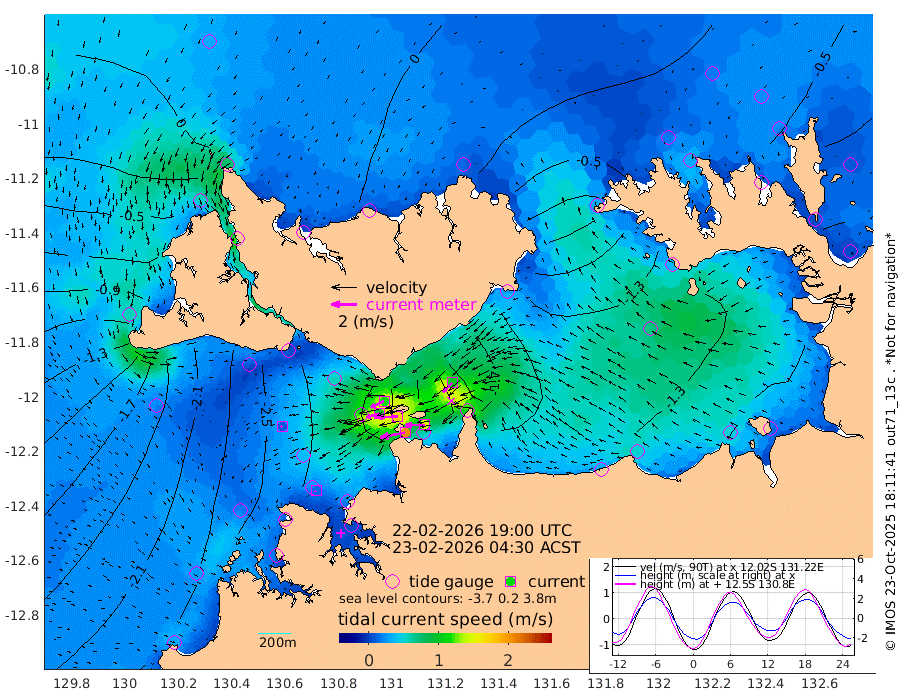 199cm/s -101T +4cm/s rms + 6cm/s 51T. Darwin_C1 52m 149cm/s -91T +4cm/s rms + 7cm/s -161T. Darwin_CW1 22m 101cm/s -106T +4cm/s rms + 8cm/s 61T. Darwin_CW2 34m 104cm/s -136T +3cm/s rms + 9cm/s 98T. Darwin_CW3 22m 172cm/s -90T +5cm/s rms + 7cm/s 88T. Darwin_C3 56m 112cm/s -115T +2cm/s rms + 9cm/s -126T. Darwin_CTbW 22m 11cm/s -136T +1cm/s rms + 1cm/s -47T. DARBGF 30m 12cm/s -170T +4cm/s rms + 3cm/s 80T. NRSDAR 19m 8cm Goodrich Bank -196cm Point Jenny -193cm Native Point -208cm Fish Reef -228cm Tapa Bay -83cm Point Fawcett (Offshore) -248cm Burge Point -202cm Munkunuwa -164cm Beagle A -251cm Parsons Bank -239cm Fenton Patches -256cm Hancox Shoal Area -260cm Nightcliff -279cm Darwin -244cm Charles Point Patches -226cm Glyde Point -209cm Chambers Bay -208cm Point Stuart -205cm Cape Hotham -197cm Christine Reef -225cm West Alligator Head -219cm East Field Island -182cm Two Hills Bay -174cm Camp Point -218cm Medina Inlet South -68cm South Barlow Point -33cm St. Asaph Bay 6cm Cape Van Dieman -5cm Snake Bay -5cm Cache Point -33cm Point Jahleel (Off) -96cm Cape Don -43cm Port Essington -47cm Smith Point - West -46cm NW Peacock Island -18cm North Of Jones Shoal -9cm Peacock Island -78cm Point David -53cm D'urville Point -82cm Copeland Island -72cm One Tree Point