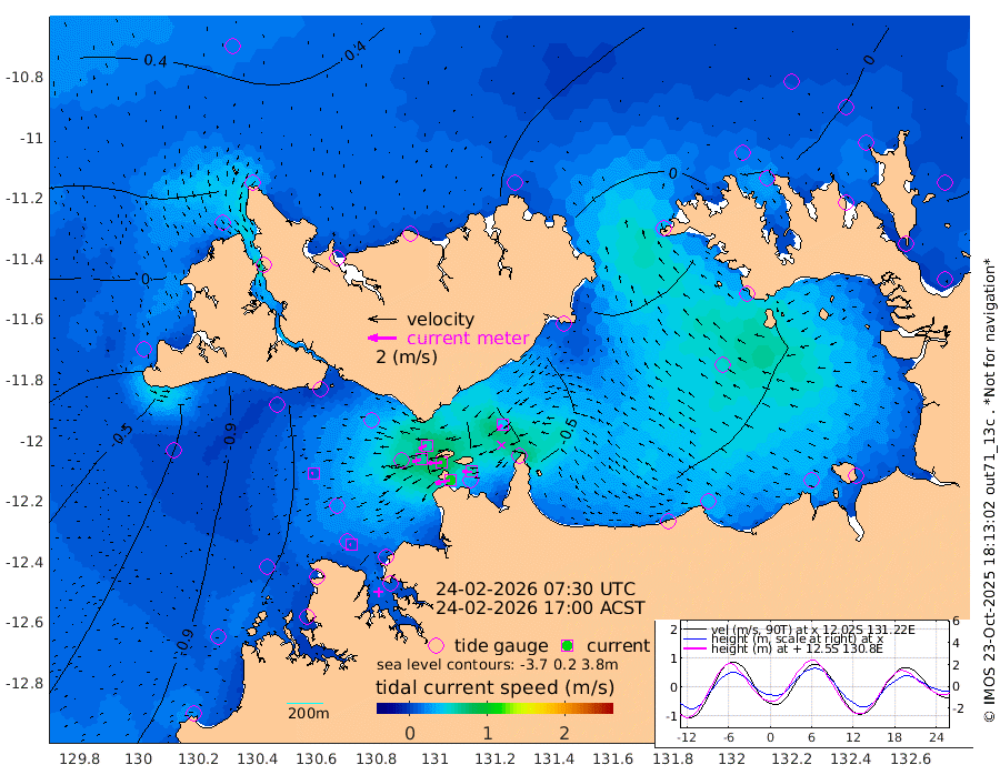 106cm/s -101T +4cm/s rms + 6cm/s 51T. Darwin_C1 52m 62cm/s -89T +4cm/s rms + 7cm/s -161T. Darwin_CW1 22m 66cm/s -107T +4cm/s rms + 8cm/s 61T. Darwin_CW2 34m 44cm/s -130T +3cm/s rms + 9cm/s 98T. Darwin_CW3 22m 97cm/s -91T +5cm/s rms + 7cm/s 88T. Darwin_C3 56m 61cm/s -115T +2cm/s rms + 9cm/s -126T. Darwin_CTbW 22m 11cm/s -108T +1cm/s rms + 1cm/s -47T. DARBGF 30m 10cm/s -110T +4cm/s rms + 3cm/s 80T. NRSDAR 19m 52cm Goodrich Bank -57cm Point Jenny -57cm Native Point -66cm Fish Reef -75cm Tapa Bay 5cm Point Fawcett (Offshore) -85cm Burge Point -88cm Munkunuwa -28cm Beagle A -106cm Parsons Bank -72cm Fenton Patches -95cm Hancox Shoal Area -91cm Nightcliff -103cm Darwin -75cm Charles Point Patches -68cm Glyde Point -51cm Chambers Bay -57cm Point Stuart -60cm Cape Hotham -45cm Christine Reef -64cm West Alligator Head -47cm East Field Island -49cm Two Hills Bay -33cm Camp Point -78cm Medina Inlet South 4cm South Barlow Point 30cm St. Asaph Bay 48cm Cape Van Dieman 40cm Snake Bay 48cm Cache Point 29cm Point Jahleel (Off) -10cm Cape Don 16cm Port Essington 14cm Smith Point - West 15cm NW Peacock Island 34cm North Of Jones Shoal 9cm Peacock Island -14cm Point David 7cm D'urville Point -18cm Copeland Island -7cm One Tree Point