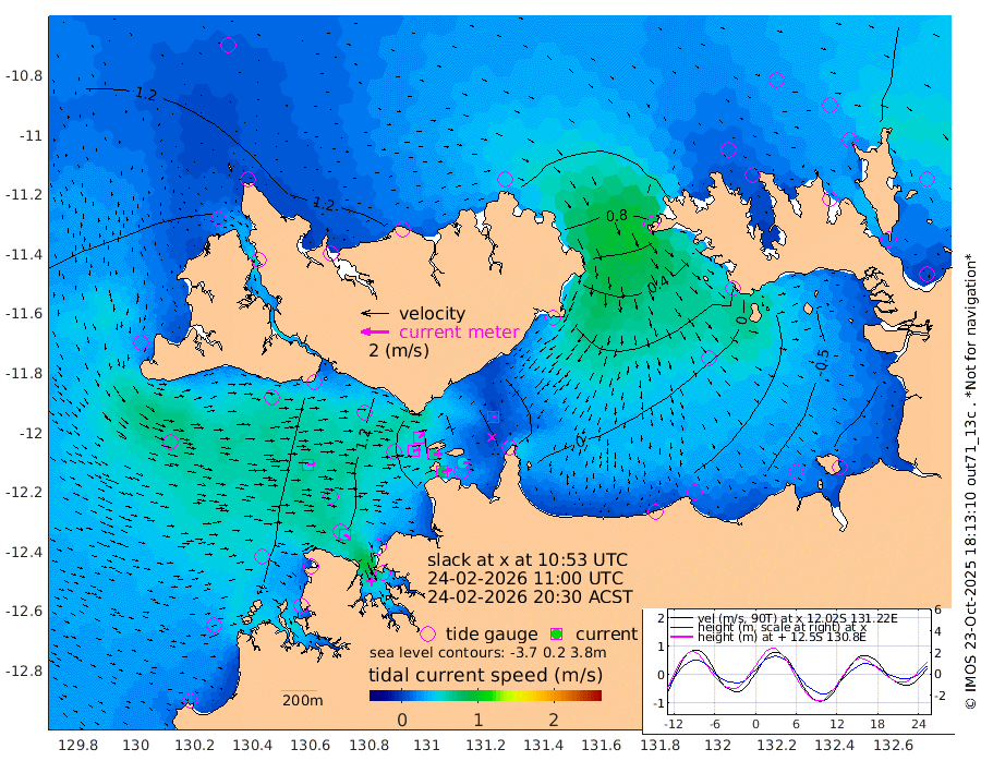 74cm/s 79T +4cm/s rms + 6cm/s 51T. Darwin_C1 52m 49cm/s 85T +4cm/s rms + 7cm/s -161T. Darwin_CW1 22m 52cm/s 75T +4cm/s rms + 8cm/s 61T. Darwin_CW2 34m 14cm/s 64T +3cm/s rms + 9cm/s 98T. Darwin_CW3 22m 63cm/s 88T +5cm/s rms + 7cm/s 88T. Darwin_C3 56m 51cm/s 62T +2cm/s rms + 9cm/s -126T. Darwin_CTbW 22m 53cm/s 90T +1cm/s rms + 1cm/s -47T. DARBGF 30m 50cm/s 120T +4cm/s rms + 3cm/s 80T. NRSDAR 19m 94cm Goodrich Bank 128cm Point Jenny 131cm Native Point 140cm Fish Reef 137cm Tapa Bay 128cm Point Fawcett (Offshore) 139cm Burge Point 141cm Munkunuwa 133cm Beagle A 138cm Parsons Bank 134cm Fenton Patches 117cm Hancox Shoal Area 122cm Nightcliff 143cm Darwin 152cm Charles Point Patches 66cm Glyde Point -19cm Chambers Bay -34cm Point Stuart 36cm Cape Hotham -18cm Christine Reef -50cm West Alligator Head -83cm East Field Island 9cm Two Hills Bay 12cm Camp Point 145cm Medina Inlet South 133cm South Barlow Point 115cm St. Asaph Bay 99cm Cape Van Dieman 108cm Snake Bay 93cm Cache Point 85cm Point Jahleel (Off) 72cm Cape Don 92cm Port Essington 91cm Smith Point - West 88cm NW Peacock Island 85cm North Of Jones Shoal 30cm Peacock Island 80cm Point David 92cm D'urville Point 74cm Copeland Island 81cm One Tree Point