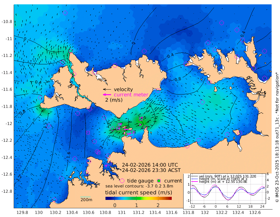 117cm/s 78T +4cm/s rms + 6cm/s 51T. Darwin_C1 52m 70cm/s 91T +4cm/s rms + 7cm/s -161T. Darwin_CW1 22m 61cm/s 73T +4cm/s rms + 8cm/s 61T. Darwin_CW2 34m 69cm/s 44T +3cm/s rms + 9cm/s 98T. Darwin_CW3 22m 104cm/s 90T +5cm/s rms + 7cm/s 88T. Darwin_C3 56m 63cm/s 64T +2cm/s rms + 9cm/s -126T. Darwin_CTbW 22m 9cm/s -50T +1cm/s rms + 1cm/s -47T. DARBGF 30m 16cm/s -31T +4cm/s rms + 3cm/s 80T. NRSDAR 19m -27cm Goodrich Bank 92cm Point Jenny 91cm Native Point 105cm Fish Reef 114cm Tapa Bay 19cm Point Fawcett (Offshore) 130cm Burge Point 102cm Munkunuwa 70cm Beagle A 144cm Parsons Bank 122cm Fenton Patches 141cm Hancox Shoal Area 135cm Nightcliff 157cm Darwin 126cm Charles Point Patches 135cm Glyde Point 131cm Chambers Bay 143cm Point Stuart 129cm Cape Hotham 119cm Christine Reef 154cm West Alligator Head 152cm East Field Island 121cm Two Hills Bay 107cm Camp Point 112cm Medina Inlet South 17cm South Barlow Point -12cm St. Asaph Bay -25cm Cape Van Dieman -13cm Snake Bay -18cm Cache Point 4cm Point Jahleel (Off) 56cm Cape Don 21cm Port Essington 21cm Smith Point - West 25cm NW Peacock Island -3cm North Of Jones Shoal 3cm Peacock Island 64cm Point David 32cm D'urville Point 67cm Copeland Island 55cm One Tree Point