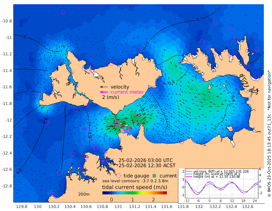 150cm/s 78T +4cm/s rms + 6cm/s 51T. Darwin_C1 52m 102cm/s 92T +4cm/s rms + 7cm/s -161T. Darwin_CW1 22m 72cm/s 72T +4cm/s rms + 8cm/s 61T. Darwin_CW2 34m 70cm/s 50T +3cm/s rms + 9cm/s 98T. Darwin_CW3 22m 111cm/s 89T +5cm/s rms + 7cm/s 88T. Darwin_C3 56m 85cm/s 65T +2cm/s rms + 9cm/s -126T. Darwin_CTbW 22m 13cm/s 68T +1cm/s rms + 1cm/s -47T. DARBGF 30m 7cm/s 45T +4cm/s rms + 3cm/s 80T. NRSDAR 19m -13cm Goodrich Bank 113cm Point Jenny 109cm Native Point 113cm Fish Reef 123cm Tapa Bay 52cm Point Fawcett (Offshore) 129cm Burge Point 114cm Munkunuwa 86cm Beagle A 130cm Parsons Bank 120cm Fenton Patches 132cm Hancox Shoal Area 138cm Nightcliff 135cm Darwin 117cm Charles Point Patches 110cm Glyde Point 109cm Chambers Bay 108cm Point Stuart 101cm Cape Hotham 109cm Christine Reef 121cm West Alligator Head 111cm East Field Island 94cm Two Hills Bay 79cm Camp Point 115cm Medina Inlet South 31cm South Barlow Point 17cm St. Asaph Bay -11cm Cape Van Dieman -12cm Snake Bay -3cm Cache Point 10cm Point Jahleel (Off) 47cm Cape Don 12cm Port Essington 17cm Smith Point - West 12cm NW Peacock Island 2cm North Of Jones Shoal 1cm Peacock Island 19cm Point David 16cm D'urville Point 22cm Copeland Island 20cm One Tree Point