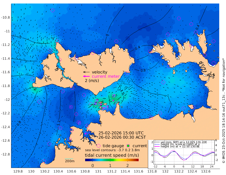 87cm/s 78T +4cm/s rms + 6cm/s 51T. Darwin_C1 52m 45cm/s 88T +4cm/s rms + 7cm/s -161T. Darwin_CW1 22m 34cm/s 73T +4cm/s rms + 8cm/s 61T. Darwin_CW2 34m 49cm/s 44T +3cm/s rms + 9cm/s 98T. Darwin_CW3 22m 58cm/s 90T +5cm/s rms + 7cm/s 88T. Darwin_C3 56m 51cm/s 64T +2cm/s rms + 9cm/s -126T. Darwin_CTbW 22m 12cm/s -72T +1cm/s rms + 1cm/s -47T. DARBGF 30m 18cm/s -43T +4cm/s rms + 3cm/s 80T. NRSDAR 19m -26cm Goodrich Bank 56cm Point Jenny 55cm Native Point 66cm Fish Reef 70cm Tapa Bay 4cm Point Fawcett (Offshore) 81cm Burge Point 56cm Munkunuwa 40cm Beagle A 95cm Parsons Bank 77cm Fenton Patches 95cm Hancox Shoal Area 85cm Nightcliff 102cm Darwin 78cm Charles Point Patches 100cm Glyde Point 107cm Chambers Bay 122cm Point Stuart 101cm Cape Hotham 98cm Christine Reef 132cm West Alligator Head 134cm East Field Island 101cm Two Hills Bay 86cm Camp Point 66cm Medina Inlet South 1cm South Barlow Point -20cm St. Asaph Bay -24cm Cape Van Dieman -15cm Snake Bay -16cm Cache Point 1cm Point Jahleel (Off) 45cm Cape Don 19cm Port Essington 19cm Smith Point - West 24cm NW Peacock Island -1cm North Of Jones Shoal 3cm Peacock Island 60cm Point David 30cm D'urville Point 64cm Copeland Island 52cm One Tree Point