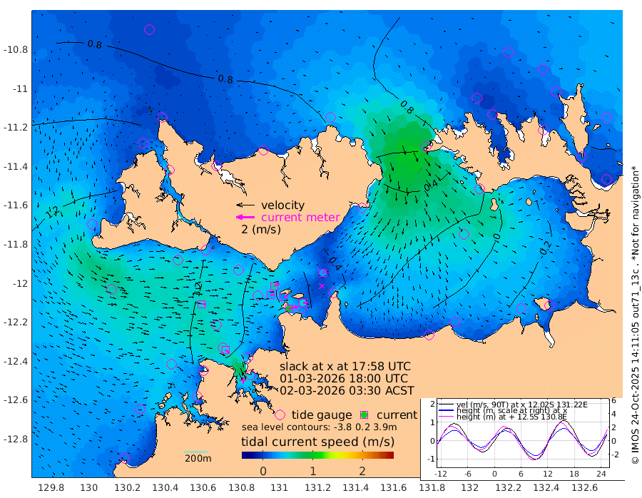 95cm/s 78T +4cm/s rms + 6cm/s 51T. Darwin_C1 52m 51cm/s 83T +4cm/s rms + 7cm/s -161T. Darwin_CW1 22m 31cm/s 77T +4cm/s rms + 8cm/s 61T. Darwin_CW2 34m 28cm/s 55T +3cm/s rms + 9cm/s 98T. Darwin_CW3 22m 24cm/s 87T +5cm/s rms + 7cm/s 88T. Darwin_C3 56m 62cm/s 63T +2cm/s rms + 9cm/s -126T. Darwin_CTbW 22m 51cm/s 93T +1cm/s rms + 1cm/s -47T. DARBGF 30m 52cm/s 122T +4cm/s rms + 3cm/s 80T. NRSDAR 19m 51cm Goodrich Bank 110cm Point Jenny 109cm Native Point 115cm Fish Reef 110cm Tapa Bay 101cm Point Fawcett (Offshore) 105cm Burge Point 104cm Munkunuwa 104cm Beagle A 106cm Parsons Bank 102cm Fenton Patches 93cm Hancox Shoal Area 99cm Nightcliff 102cm Darwin 110cm Charles Point Patches 54cm Glyde Point 0cm Chambers Bay -8cm Point Stuart 38cm Cape Hotham -2cm Christine Reef -21cm West Alligator Head -49cm East Field Island 20cm Two Hills Bay 14cm Camp Point 108cm Medina Inlet South 88cm South Barlow Point 76cm St. Asaph Bay 60cm Cape Van Dieman 62cm Snake Bay 61cm Cache Point 56cm Point Jahleel (Off) 62cm Cape Don 70cm Port Essington 71cm Smith Point - West 69cm NW Peacock Island 64cm North Of Jones Shoal 24cm Peacock Island 78cm Point David 76cm D'urville Point 77cm Copeland Island 77cm One Tree Point