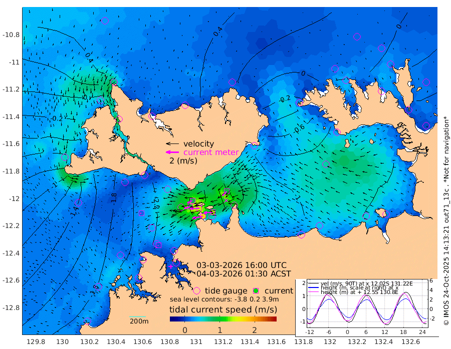 168cm/s -101T +4cm/s rms + 6cm/s 51T. Darwin_C1 52m 137cm/s -91T +4cm/s rms + 7cm/s -161T. Darwin_CW1 22m 90cm/s -106T +4cm/s rms + 8cm/s 61T. Darwin_CW2 34m 93cm/s -136T +3cm/s rms + 9cm/s 98T. Darwin_CW3 22m 141cm/s -91T +5cm/s rms + 7cm/s 88T. Darwin_C3 56m 88cm/s -116T +2cm/s rms + 9cm/s -126T. Darwin_CTbW 22m 14cm/s -120T +1cm/s rms + 1cm/s -47T. DARBGF 30m 11cm/s -119T +4cm/s rms + 3cm/s 80T. NRSDAR 19m 43cm Goodrich Bank -166cm Point Jenny -163cm Native Point -190cm Fish Reef -195cm Tapa Bay -53cm Point Fawcett (Offshore) -225cm Burge Point -188cm Munkunuwa -143cm Beagle A -221cm Parsons Bank -218cm Fenton Patches -216cm Hancox Shoal Area -225cm Nightcliff -246cm Darwin -210cm Charles Point Patches -186cm Glyde Point -157cm Chambers Bay -159cm Point Stuart -163cm Cape Hotham -142cm Christine Reef -173cm West Alligator Head -166cm East Field Island -132cm Two Hills Bay -128cm Camp Point -194cm Medina Inlet South -39cm South Barlow Point -4cm St. Asaph Bay 40cm Cape Van Dieman 35cm Snake Bay 34cm Cache Point 7cm Point Jahleel (Off) -52cm Cape Don -2cm Port Essington -3cm Smith Point - West 2cm NW Peacock Island 26cm North Of Jones Shoal 6cm Peacock Island -22cm Point David -6cm D'urville Point -28cm Copeland Island -18cm One Tree Point