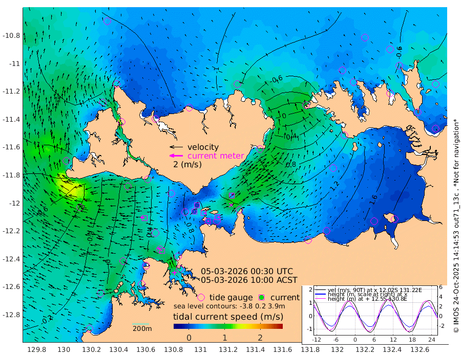 15cm/s 87T +4cm/s rms + 6cm/s 51T. Darwin_C1 52m 23cm/s 84T +4cm/s rms + 7cm/s -161T. Darwin_CW1 22m 5cm/s 69T +4cm/s rms + 8cm/s 61T. Darwin_CW2 34m 35cm/s 34T +3cm/s rms + 9cm/s 98T. Darwin_CW3 22m 34cm/s 93T +5cm/s rms + 7cm/s 88T. Darwin_C3 56m 1cm/s 152T +2cm/s rms + 9cm/s -126T. Darwin_CTbW 22m 64cm/s -84T +1cm/s rms + 1cm/s -47T. DARBGF 30m 77cm/s -53T +4cm/s rms + 3cm/s 80T. NRSDAR 19m -97cm Goodrich Bank -21cm Point Jenny -27cm Native Point -7cm Fish Reef -2cm Tapa Bay -83cm Point Fawcett (Offshore) 22cm Burge Point -17cm Munkunuwa -44cm Beagle A 33cm Parsons Bank 12cm Fenton Patches 50cm Hancox Shoal Area 32cm Nightcliff 52cm Darwin 18cm Charles Point Patches 93cm Glyde Point 167cm Chambers Bay 193cm Point Stuart 116cm Cape Hotham 150cm Christine Reef 220cm West Alligator Head 253cm East Field Island 128cm Two Hills Bay 115cm Camp Point -3cm Medina Inlet South -92cm South Barlow Point -101cm St. Asaph Bay -103cm Cape Van Dieman -100cm Snake Bay -88cm Cache Point -60cm Point Jahleel (Off) 1cm Cape Don -48cm Port Essington -51cm Smith Point - West -45cm NW Peacock Island -62cm North Of Jones Shoal -19cm Peacock Island -5cm Point David -44cm D'urville Point 3cm Copeland Island -9cm One Tree Point