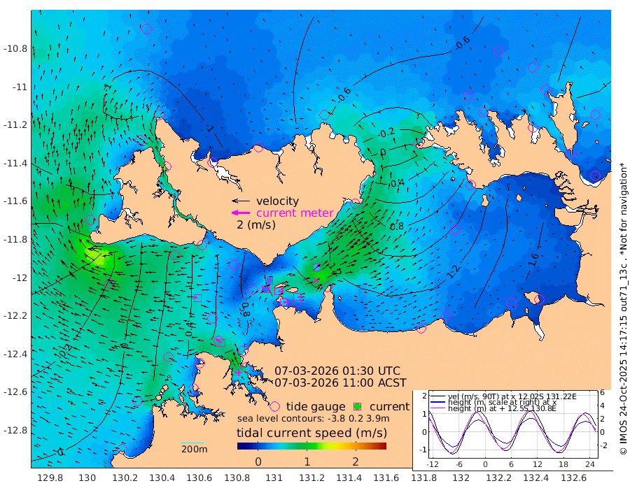 52cm/s 81T +4cm/s rms + 6cm/s 51T. Darwin_C1 52m 45cm/s 89T +4cm/s rms + 7cm/s -161T. Darwin_CW1 22m 18cm/s 70T +4cm/s rms + 8cm/s 61T. Darwin_CW2 34m 44cm/s 43T +3cm/s rms + 9cm/s 98T. Darwin_CW3 22m 53cm/s 92T +5cm/s rms + 7cm/s 88T. Darwin_C3 56m 21cm/s 68T +2cm/s rms + 9cm/s -126T. Darwin_CTbW 22m 53cm/s -82T +1cm/s rms + 1cm/s -47T. DARBGF 30m 70cm/s -53T +4cm/s rms + 3cm/s 80T. NRSDAR 19m -78cm Goodrich Bank -2cm Point Jenny -8cm Native Point 13cm Fish Reef 16cm Tapa Bay -51cm Point Fawcett (Offshore) 31cm Burge Point 0cm Munkunuwa -27cm Beagle A 42cm Parsons Bank 20cm Fenton Patches 58cm Hancox Shoal Area 44cm Nightcliff 62cm Darwin 31cm Charles Point Patches 99cm Glyde Point 169cm Chambers Bay 195cm Point Stuart 122cm Cape Hotham 149cm Christine Reef 223cm West Alligator Head 251cm East Field Island 136cm Two Hills Bay 116cm Camp Point 15cm Medina Inlet South -70cm South Barlow Point -76cm St. Asaph Bay -82cm Cape Van Dieman -79cm Snake Bay -66cm Cache Point -41cm Point Jahleel (Off) 15cm Cape Don -33cm Port Essington -36cm Smith Point - West -32cm NW Peacock Island -43cm North Of Jones Shoal -13cm Peacock Island 1cm Point David -32cm D'urville Point 7cm Copeland Island 0cm One Tree Point