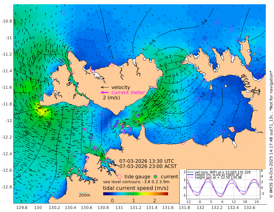41cm/s 81T +4cm/s rms + 6cm/s 51T. Darwin_C1 52m 32cm/s 90T +4cm/s rms + 7cm/s -161T. Darwin_CW1 22m 20cm/s 67T +4cm/s rms + 8cm/s 61T. Darwin_CW2 34m 46cm/s 45T +3cm/s rms + 9cm/s 98T. Darwin_CW3 22m 56cm/s 92T +5cm/s rms + 7cm/s 88T. Darwin_C3 56m 15cm/s 65T +2cm/s rms + 9cm/s -126T. Darwin_CTbW 22m 61cm/s -83T +1cm/s rms + 1cm/s -47T. DARBGF 30m 77cm/s -53T +4cm/s rms + 3cm/s 80T. NRSDAR 19m -94cm Goodrich Bank -21cm Point Jenny -24cm Native Point -2cm Fish Reef -3cm Tapa Bay -81cm Point Fawcett (Offshore) 21cm Burge Point -14cm Munkunuwa -42cm Beagle A 34cm Parsons Bank 13cm Fenton Patches 43cm Hancox Shoal Area 25cm Nightcliff 55cm Darwin 19cm Charles Point Patches 94cm Glyde Point 160cm Chambers Bay 188cm Point Stuart 109cm Cape Hotham 139cm Christine Reef 215cm West Alligator Head 246cm East Field Island 126cm Two Hills Bay 110cm Camp Point 2cm Medina Inlet South -85cm South Barlow Point -101cm St. Asaph Bay -99cm Cape Van Dieman -93cm Snake Bay -87cm Cache Point -59cm Point Jahleel (Off) 4cm Cape Don -44cm Port Essington -49cm Smith Point - West -43cm NW Peacock Island -64cm North Of Jones Shoal -20cm Peacock Island -7cm Point David -42cm D'urville Point 0cm Copeland Island -9cm One Tree Point
